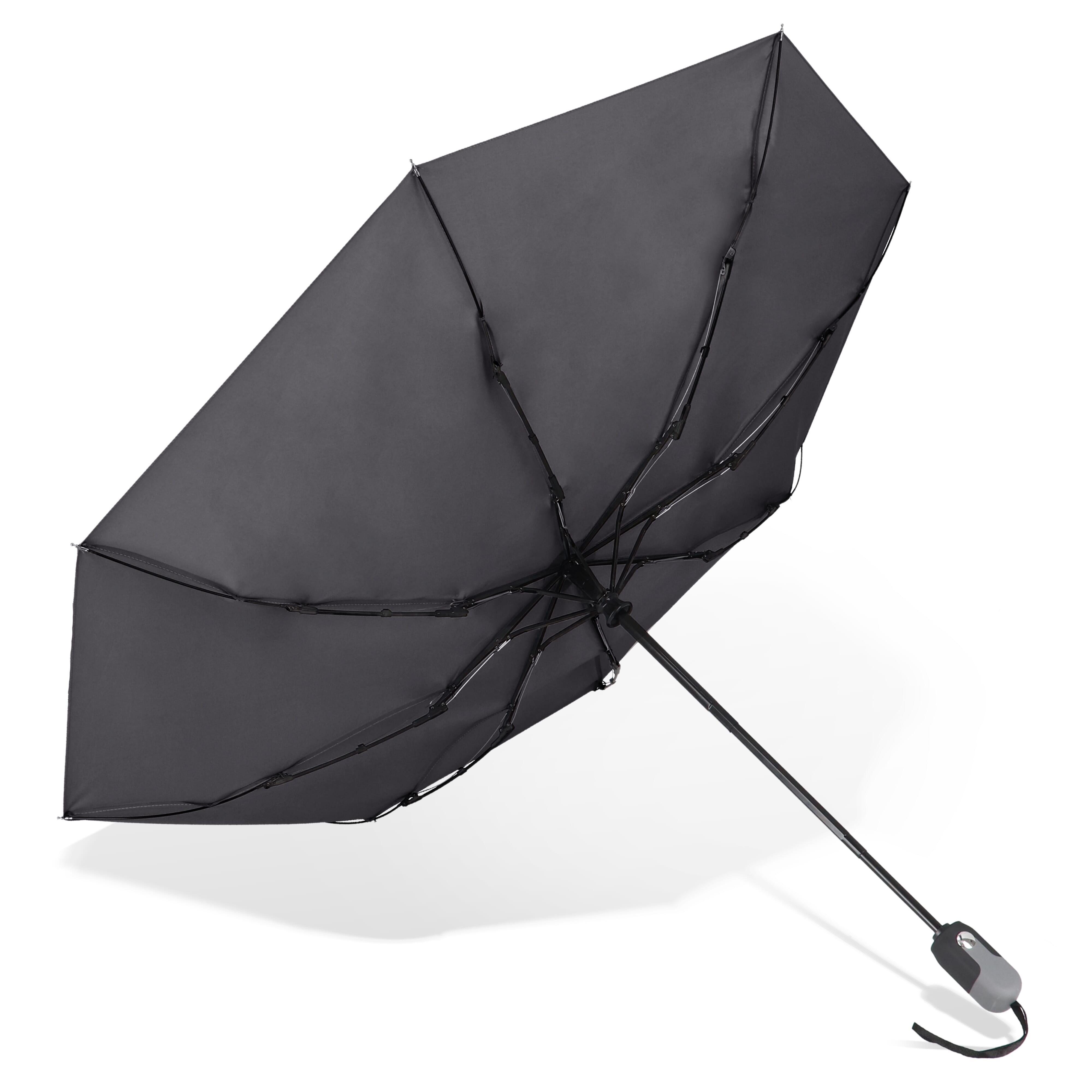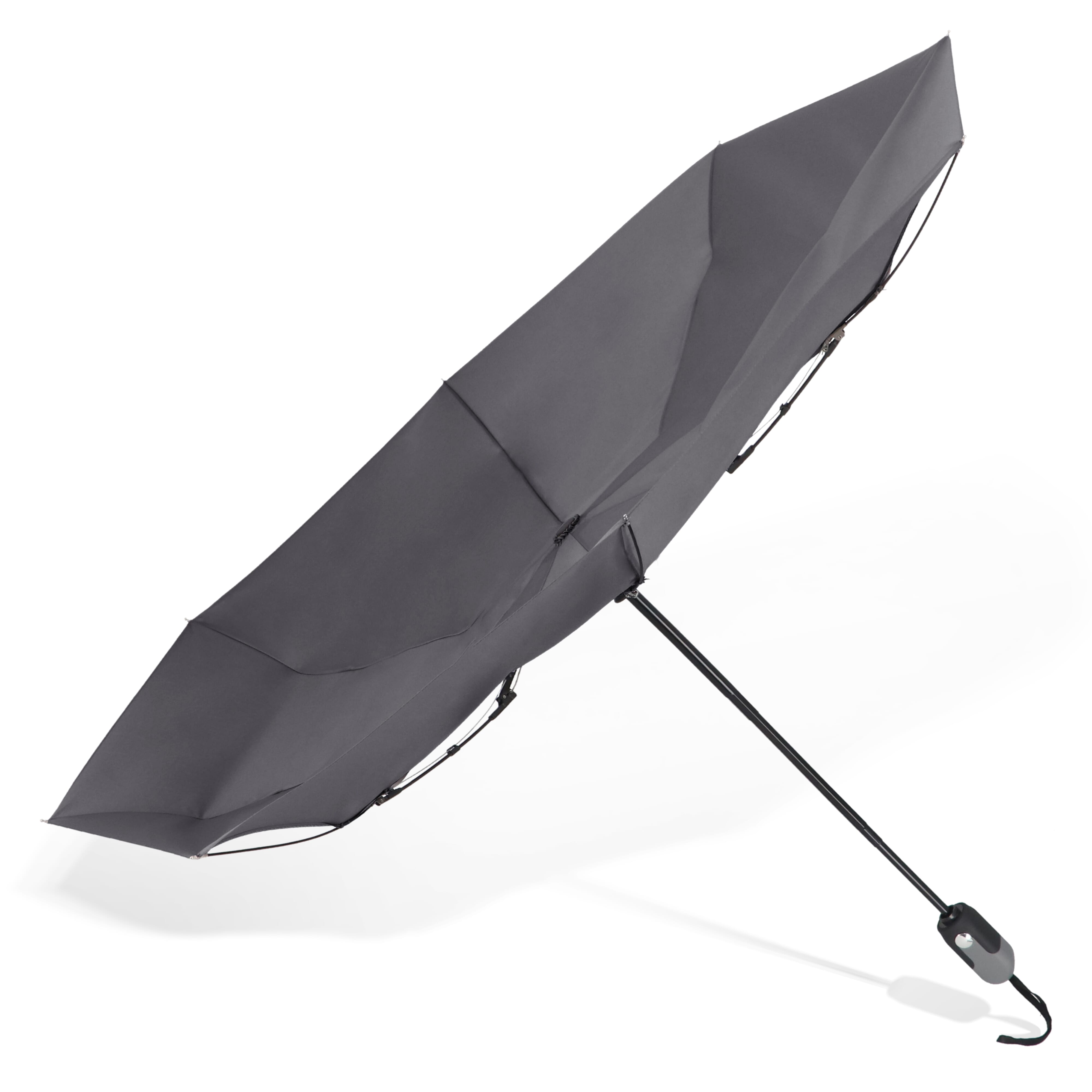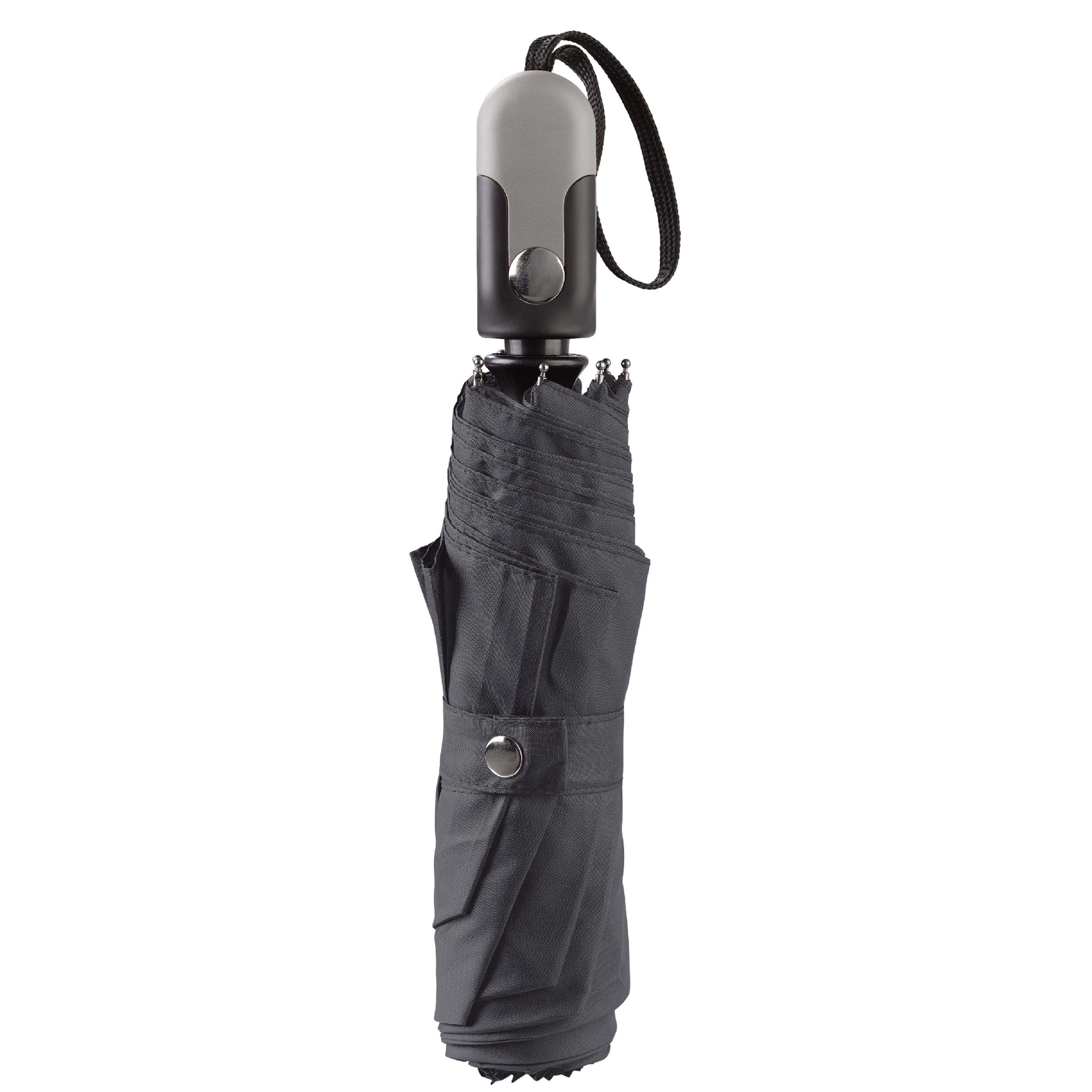 Luxuriöser, faltbarer Regenschirm im Business-Look & Feel. Der ergonomisch geformte Griff verfügt über einen Mechanismus zum automatischen Öffnen und Schließen des Schirms. Das Gestell ist teilweise aus Fiberglas gefertigt, was dem Schirm zusätzliche Stärke verleiht. Wird mit einer Hülle geliefert.