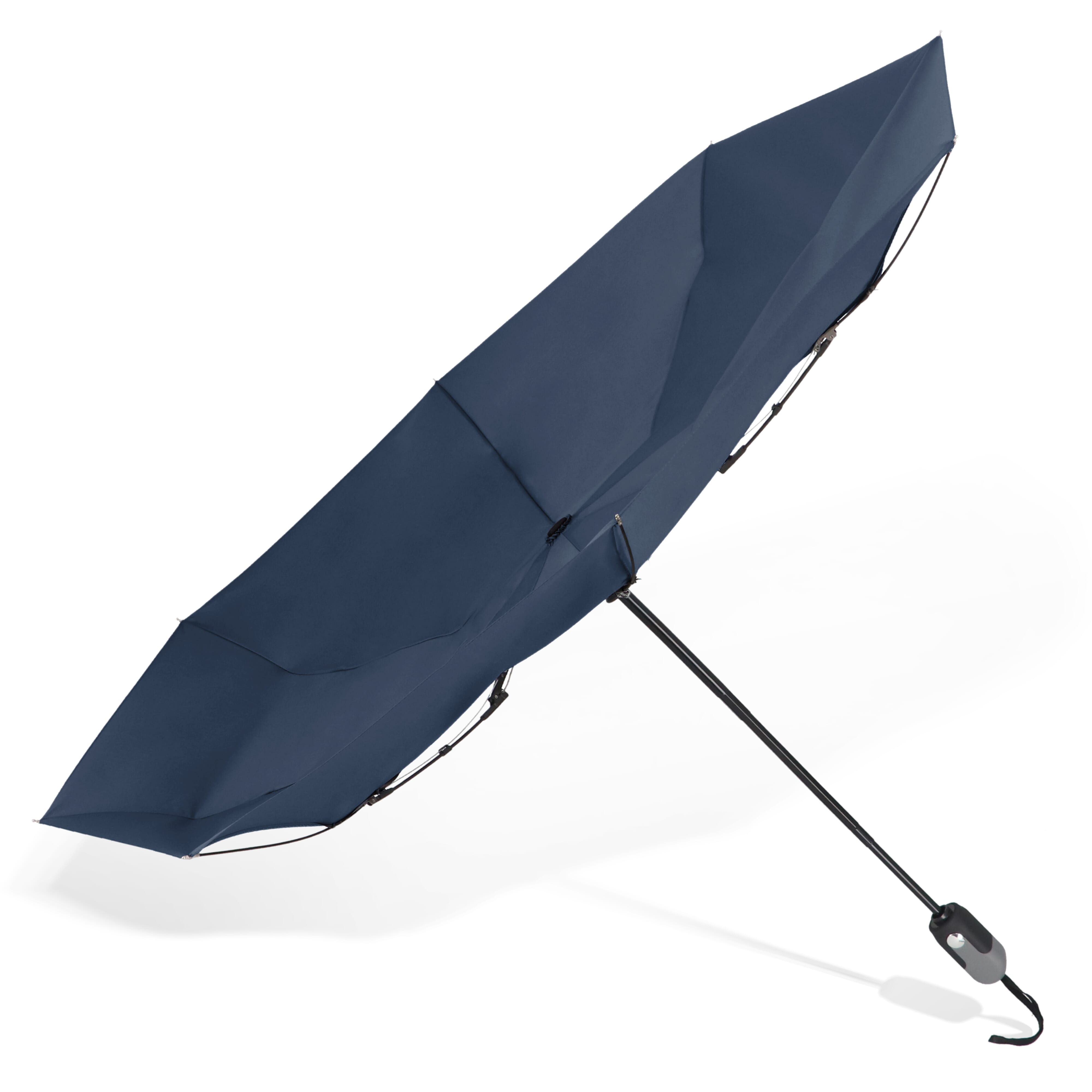 Luxuriöser, faltbarer Regenschirm im Business-Look & Feel. Der ergonomisch geformte Griff verfügt über einen Mechanismus zum automatischen Öffnen und Schließen des Schirms. Das Gestell ist teilweise aus Fiberglas gefertigt, was dem Schirm zusätzliche Stärke verleiht. Wird mit einer Hülle geliefert.