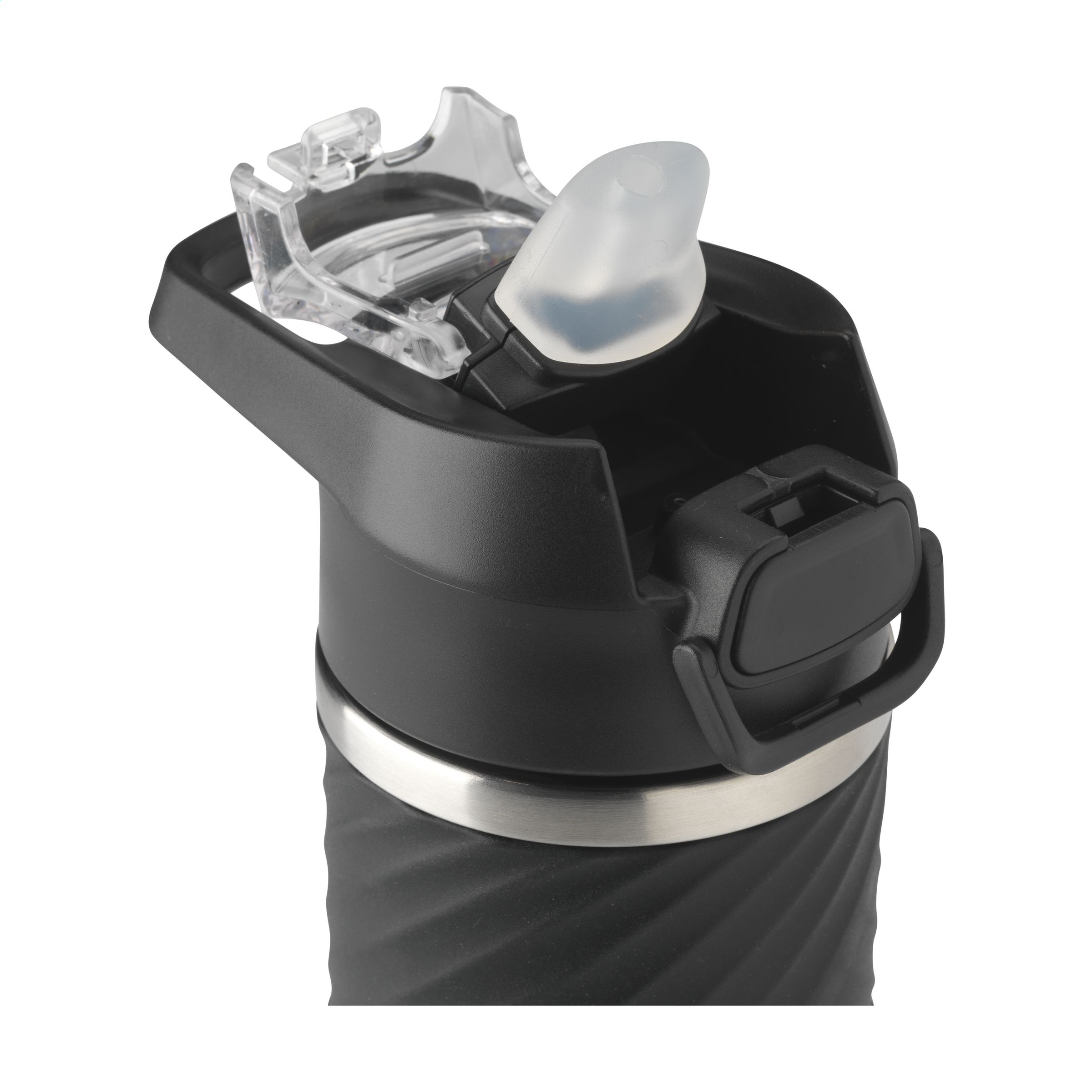 WoW! Doppelwandige Wasserflasche / Thermosflasche aus recyceltem Edelstahl. Mit einem auslaufsicheren PP-Schraubverschluss, einer zusammenklappbaren Trinktülle aus Silikon und einem Strohhalm. Die Trinktülle ist mit einem transparenten Deckel mit Druckknopf und Verriegelung hygienisch verschlossen. Praktisch beim Sport und im Auto. Das liegt daran, dass die Flasche beim Trinken nicht gekippt werden muss. Die Flasche ist mit einem großzügigen, rutschfesten Griff aus Gummi ausgestattet. Dank ihres schicken und gleichzeitig coolen Designs fällt die Flasche sofort ins Auge. Geeignet, um kalte oder heiße Getränke auf der richtigen Temperatur zu halten. Nicht spülmaschinengeeignet. RCS-zertifiziert. Gesamtes recyceltes Material: 68%. Fassungsvermögen: 500 ml. Edelstahl kann viele Male recycelt werden – die Qualität des Materials bleibt dabei weitgehend erhalten. Durch die Verwendung von recyceltem Edelstahl kommt eine geringere Menge an neuen Rohstoffen zum Einsatz. Das bedeutet weniger Energieverbrauch und weniger Wasserverbrauch. Wird einzeln in einem Kraftkarton geliefert.