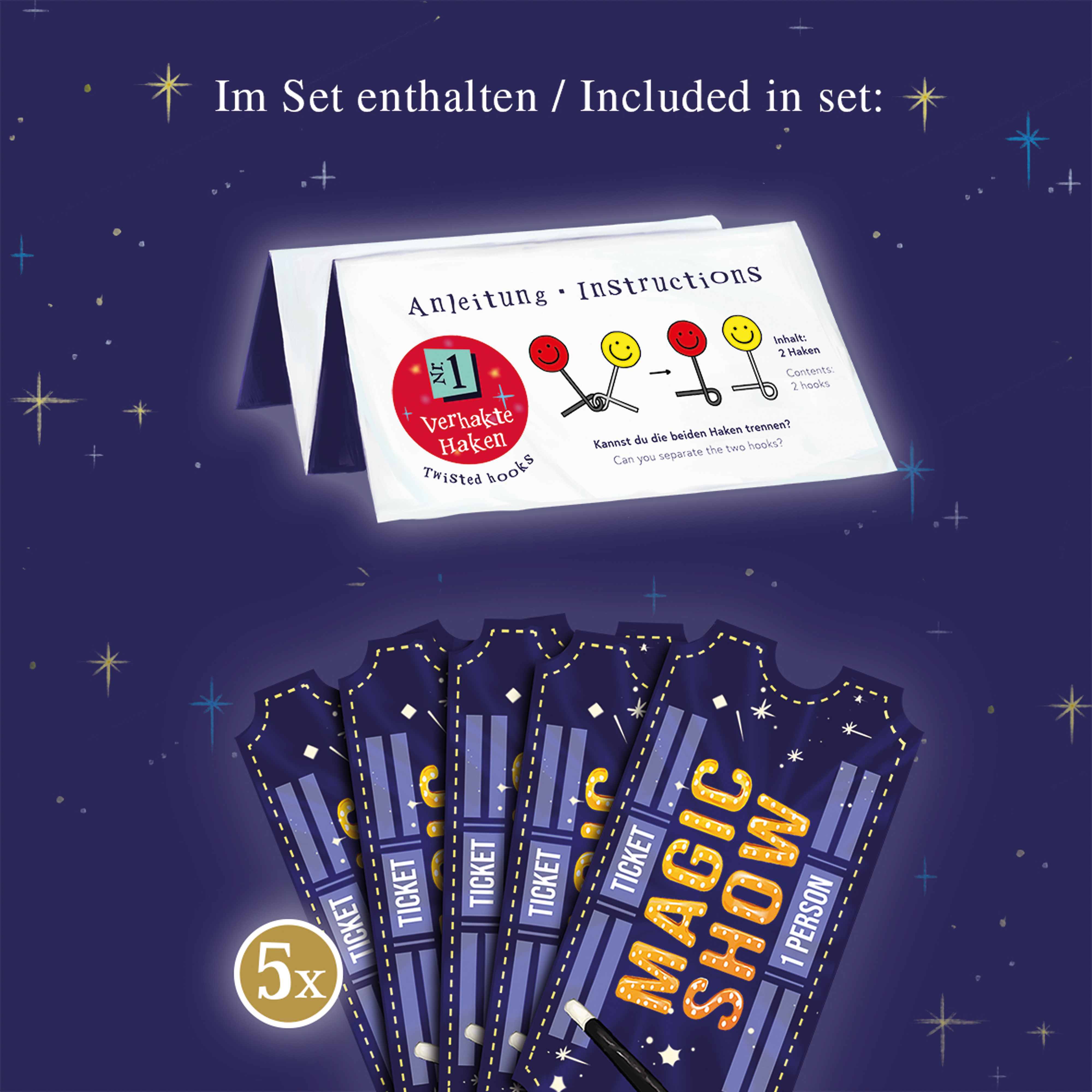 Dieses Display bietet eine fantastische Auswahl an 18 verschiedenen Zaubertricks, die sowohl kleine als auch große Zauberkünstler begeistern werden! Jedes Zaubertrick-Set enthält eine leicht verständliche, bebilderte Anleitung, die ausführlich zeigt, worauf es bei diesen verblüffenden Illusionen ankommt. Zusätzlich sind jeweils 5 Tickets enthalten, mit denen du zu deiner eigenen MAGIC SHOW einladen kannst. Geeignet für Nachwuchszauberer ab 6 bzw. 8 Jahren.