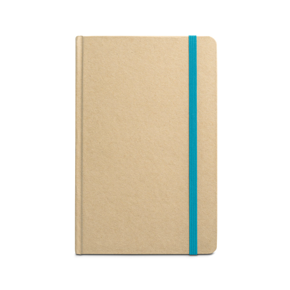 A5 Notizbuch mit 160 linierten Seiten mit Hardcover aus Karton. Mit Gummiband und Trennband in der gleichen Farbe. 137 x 210 mm