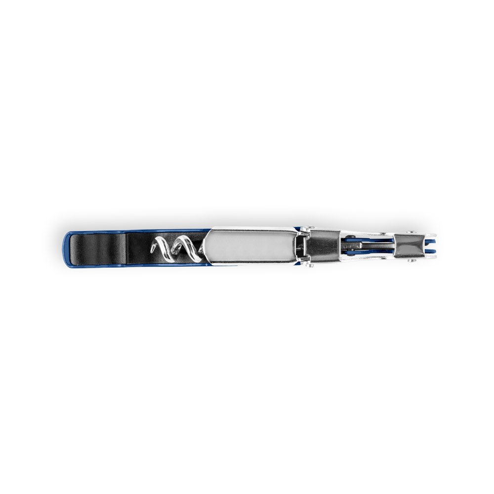 Korkenzieher aus Metall und PP. Mit einem Flaschenöffner und Sommeliermesser. Die Spirale ist aus Edelstahl. 121 x 20 x 12 mm