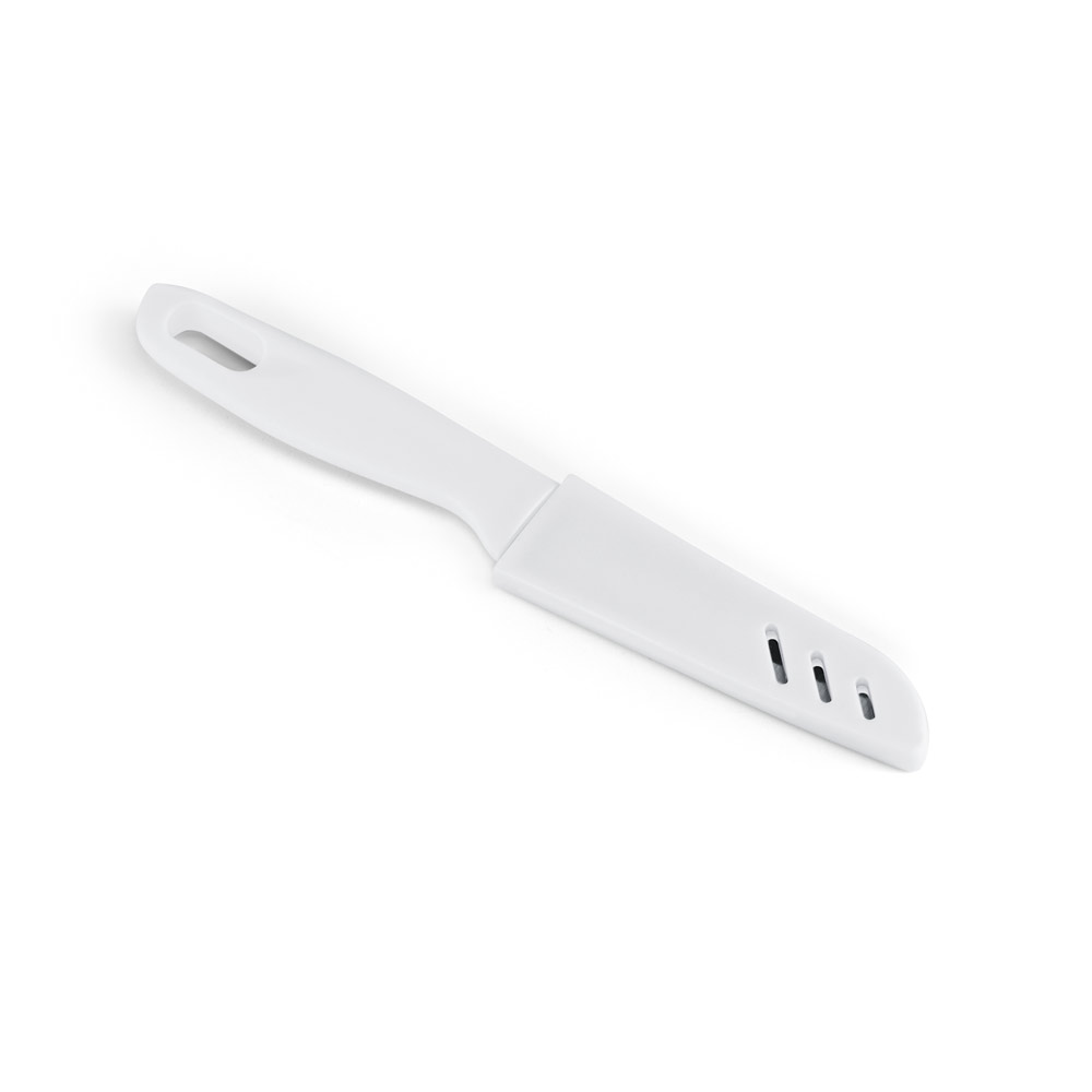Messer aus Edelstahl und PP mit einer Schutzhülle. 205 x 31 x 13 mm