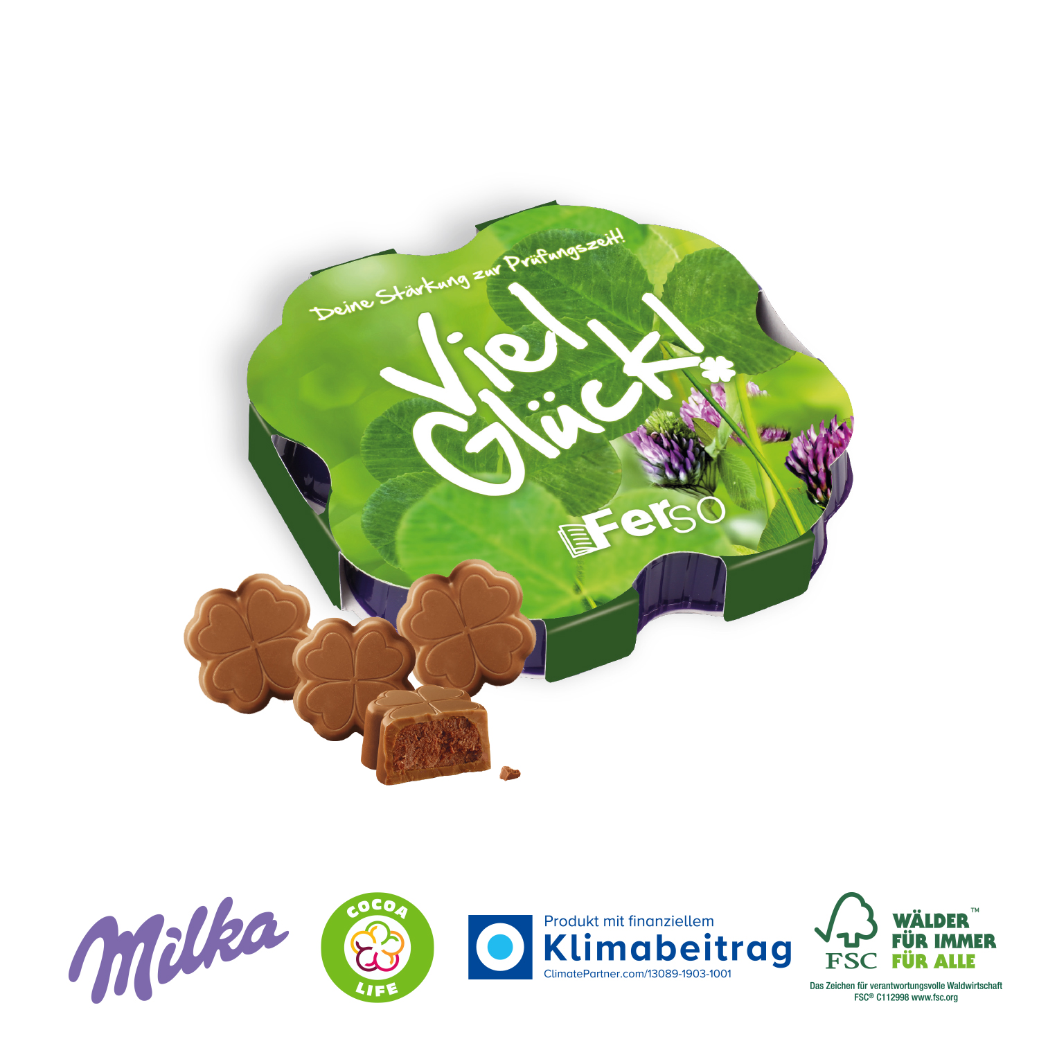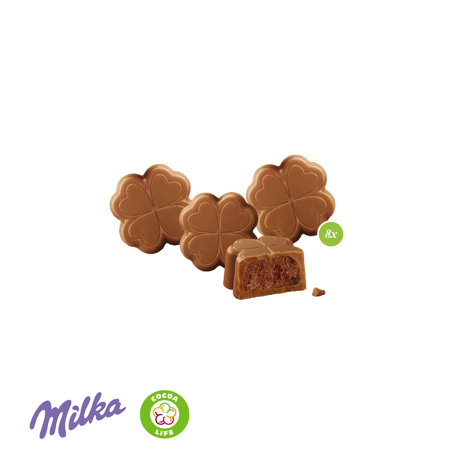 Qualität auf ganzer Linie! Für die kleine Geste oder die spontane Aufmerksamkeit gibt es Milka "Kleines Dankeschön" mit acht kleeblattförmigen Pralinés. Feine Kakaocreme, umhüllt von zartschmelzender Alpenmilchschokolade.