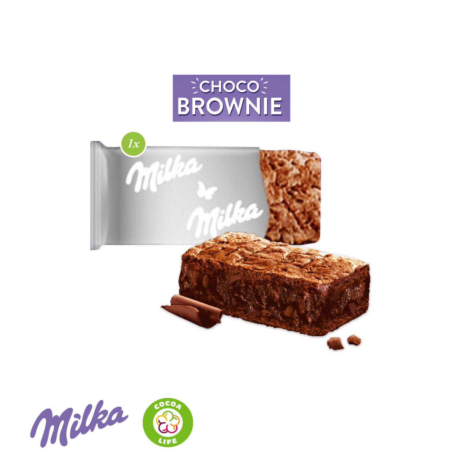 Extra schokoladige Werbemomente! Die Schoko-Kuchen von Milka "Choco Brownie" oder "Choco Brookie" sind Dank der großen Schokoladenstückchen extra lecker. Verpackt in einer individuell bedruckbaren Werbekartonage. Lassen Sie Ihrer Kreativität freien Lauf.