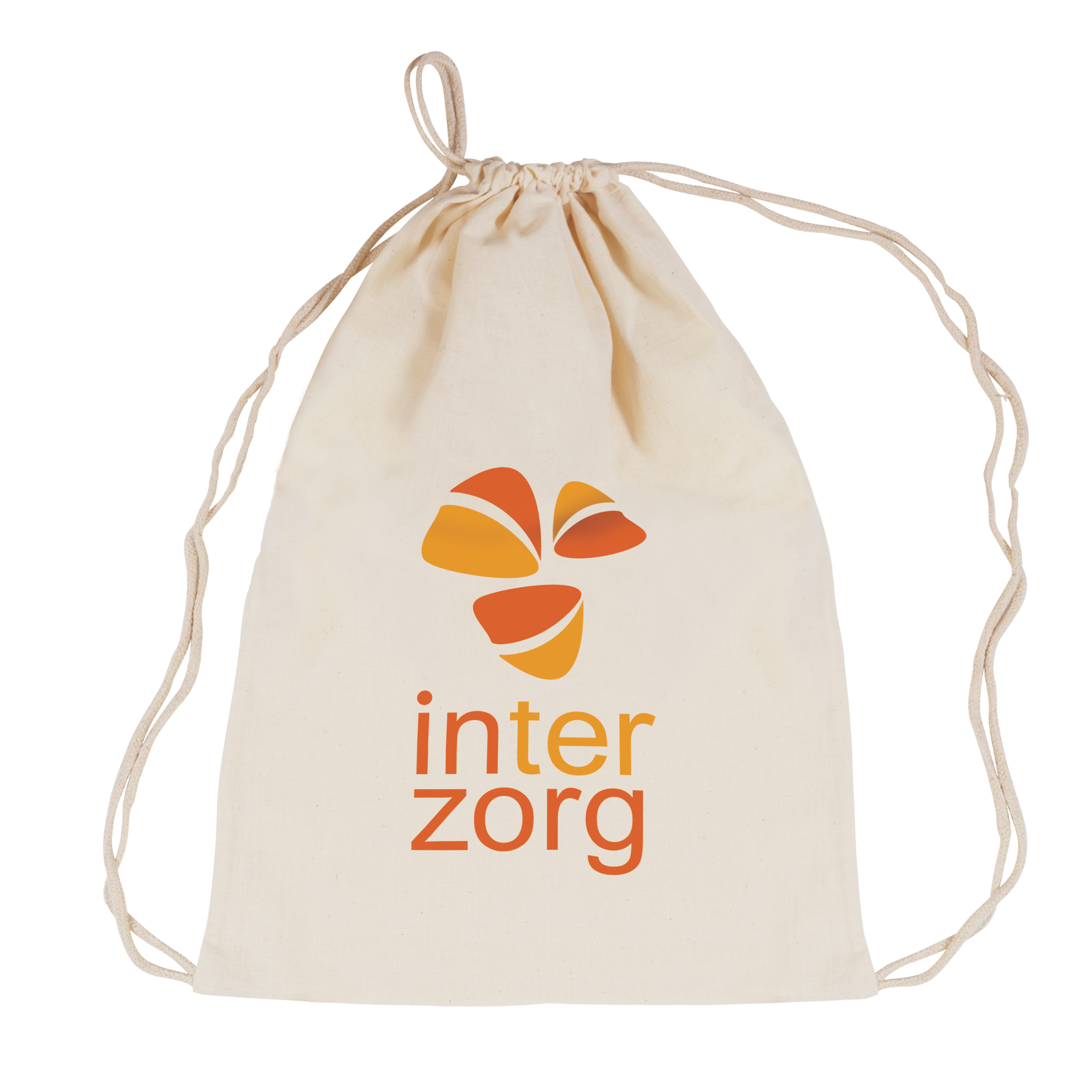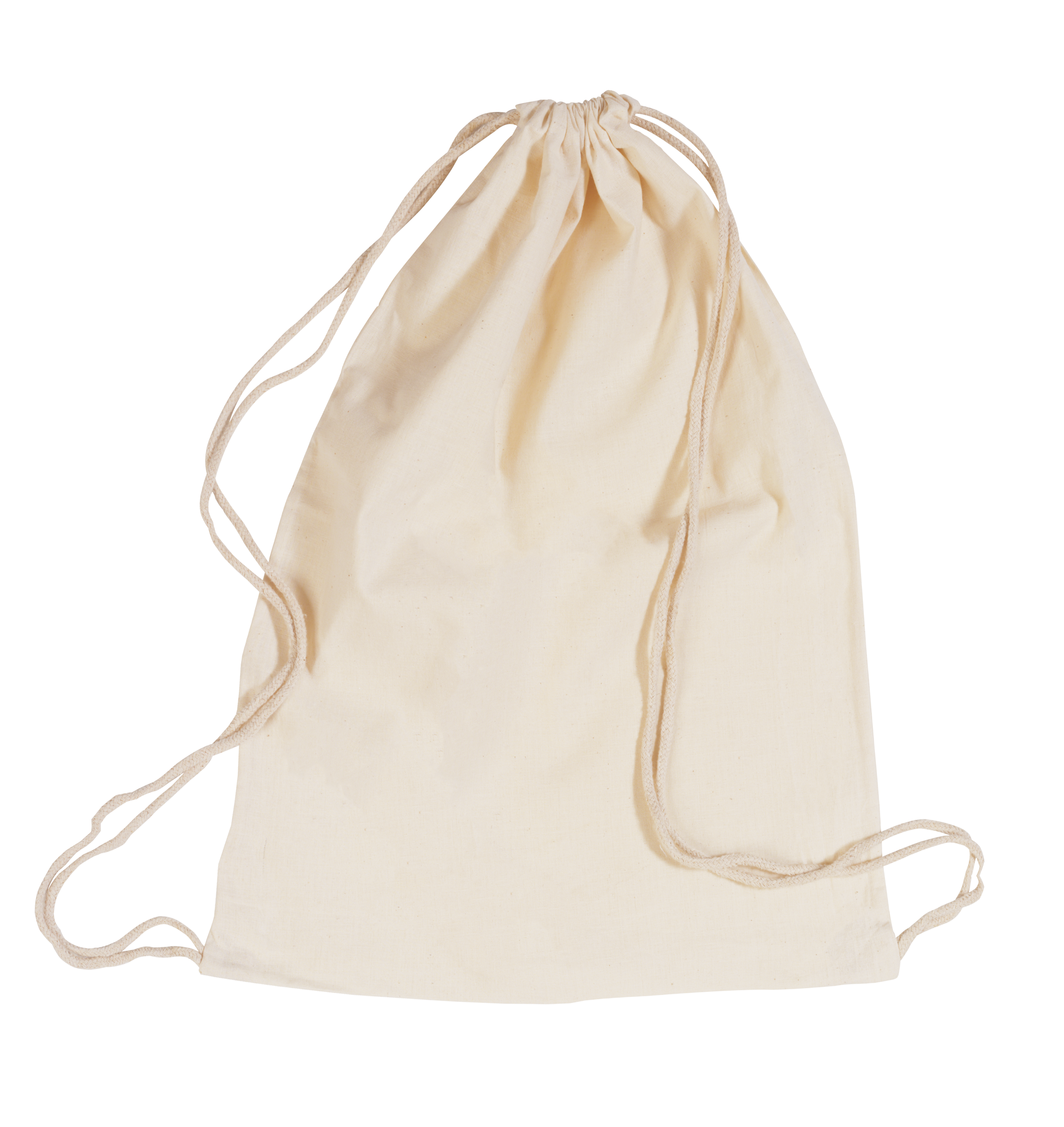 Baumwoll Rucksack naturfarben 350 x 495 mm, mit Kordeln, 50 x 550 mm, 100% Baumwolle, 140 gr / m2.