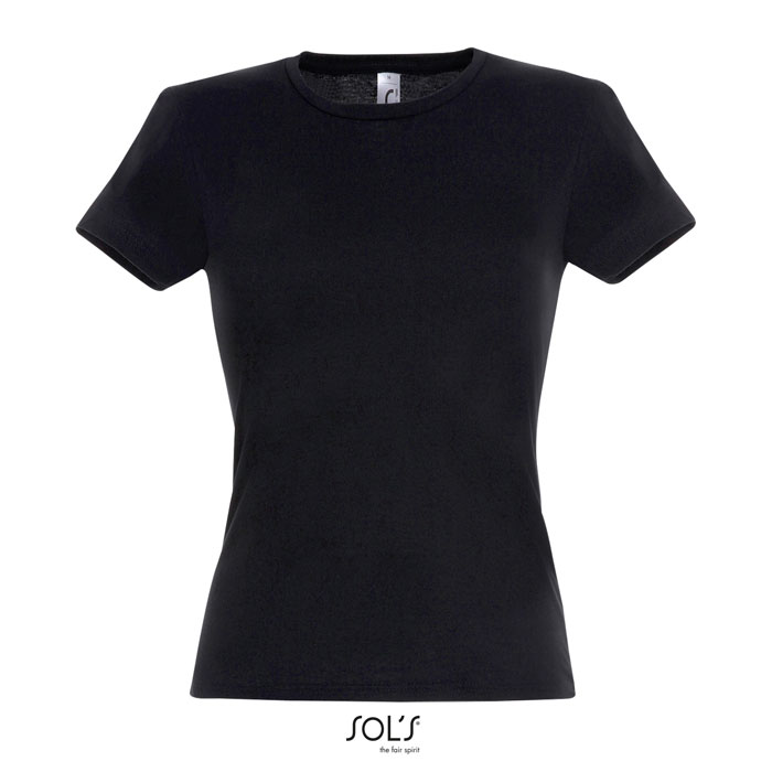 SOL'S MISS Damen T-Shirt. In 24 Farben erhältlich und mit seinem taillierten Schnitt auf dem europäischen Markt sehr beliebt. Nackenband, schmaler Kragen, Kurzarm, moderner, taillierter Schnitt mit Seitennähten. Material: 150g / m² in 100% halbgekämmter, ringgesponnener Baumwolle.