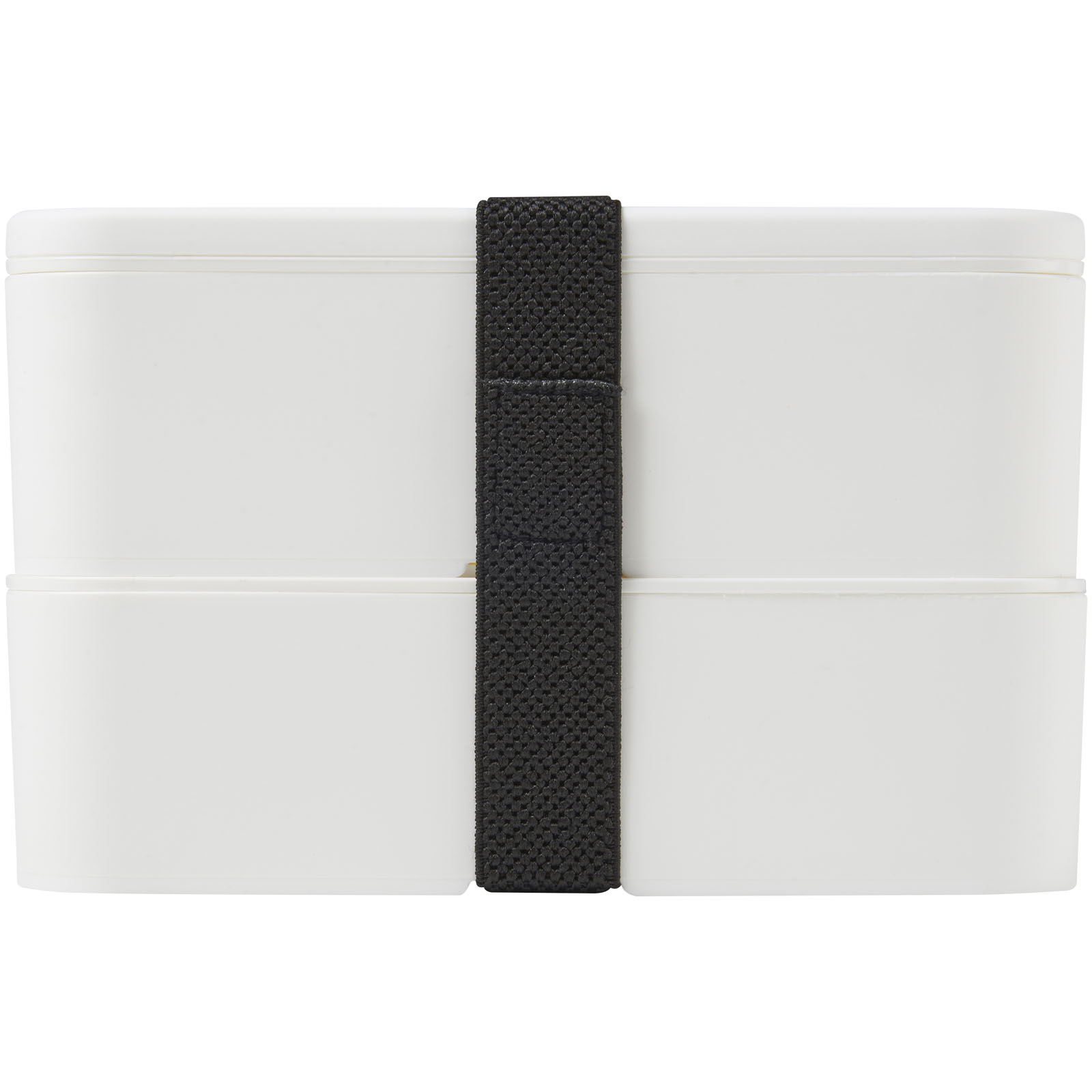 Diese MIYO Doppel-Lunchbox mit zwei 700 ml Behältern bietet viel Platz für Sandwiches, Obst, Salat und vieles mehr. Sie wird von einem Band aus recyceltem PET gehalten. Andere Farbkombinationen und Zubehör wie z. B. ein Göffel oder ein Innenfach sind ebenfalls erhältlich. Bitte kontaktieren Sie uns für weitere Informationen. Mikrowellengeeignet, spülmaschinenfest, BPA-frei und vollständig recycelbar. Hergestellt in UK und verpackt in einem recycelten PE-Kunststoffbeutel. Sie können Ihr MIYO ganz individuell mit Einzelnamen auf dem Deckel gestalten. Kontaktieren Sie uns bitte für weitere Informationen.