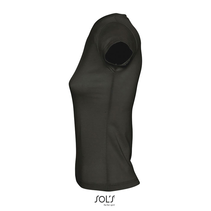SOL'S MOON Damen-T-Shirt mit tiefem V-Ausschnitt und taillierter Schnittführung. Rippkragen, Nackenband, Kurzarm, Seitennähte. Material: 150g / m² 100% halbgekämmte, ringgesponnene Baumwolle.