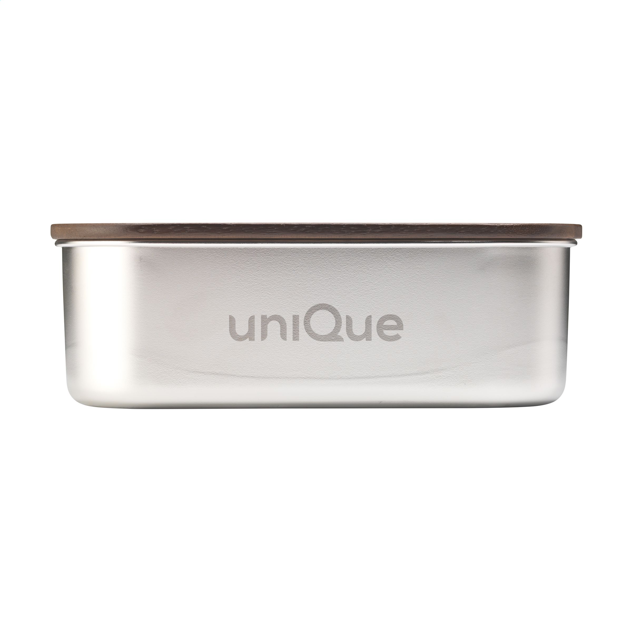 WoW! Luxuriöse Lunchbox aus hochwertigem, recyceltem Edelstahl. Der auffallend schöne Deckel aus Akazienholz schließt dank des Silikonkante perfekt ab und hält Ihr Mittagessen länger frisch. Akazienholz ist eine robuste Holzart mit einer warmen Ausstrahlung. Diese luxuriöse Lunchbox aus hochwertigen Materialien vereint Stil mit Funktionalität und verfügt über ein Gummiband mit Klettverschluss. Nicht spülmaschinengeeignet. Fassungsvermögen 1.700 ml. RCS-zertifiziert. Recyceltes Material insgesamt: 45%. Edelstahl kann viele Male recycelt werden – die Qualität des Materials bleibt dabei weitgehend erhalten. Durch die Verwendung von recyceltem Edelstahl kommt eine geringere Menge an neuen Rohstoffen zum Einsatz. Das bedeutet weniger Energieverbrauch und weniger Wasserverbrauch. Wird einzeln in einem Kraftkarton geliefert.