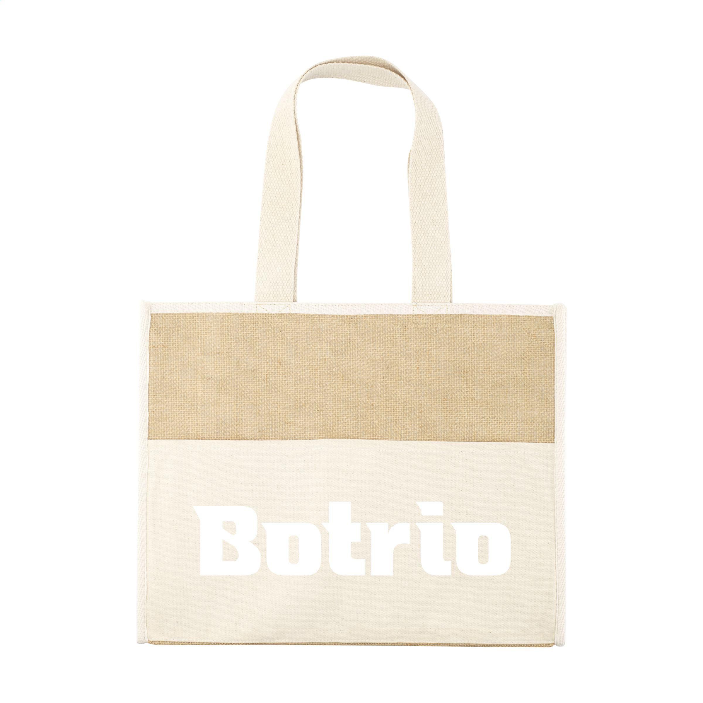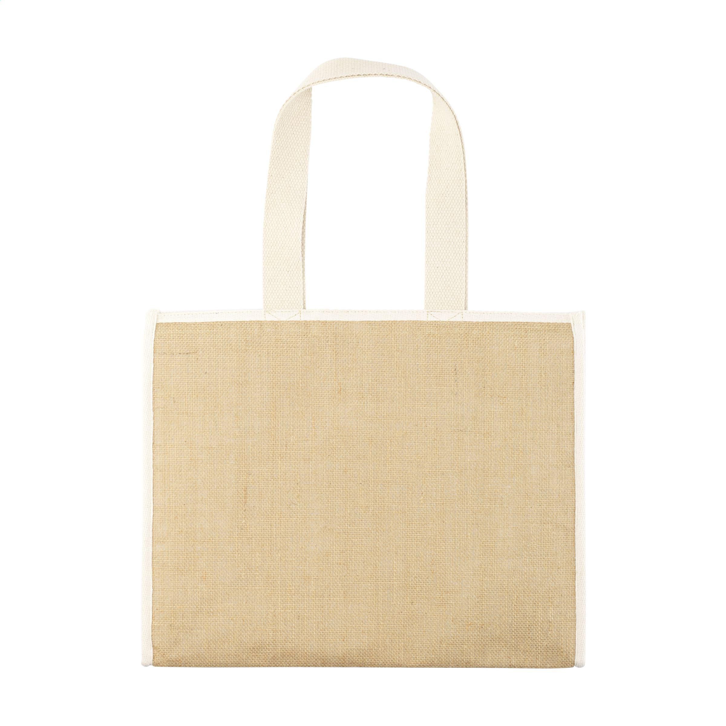 Großzügige Shopper-/Kühltasche mit isolierender Innenseite aus Aluminium und Klettverschluss. Ideal für den Transport von Tiefkühlware, aber auch zum Kühlen von Speisen und Getränken bei Ausflügen geeignet. Mit aufeinander abgestimmten Naturfarben und einer Materialkombination aus robuster Jute und Baumwolle. Lange, gewebte Griffe. Das vordere Fach mit Klettverschluss bietet zusätzlichen Stauraum. Geeignet als Einkaufstasche, Kühltasche und Strandtasche. Fassungsvermögen: ca. 28 Liter.