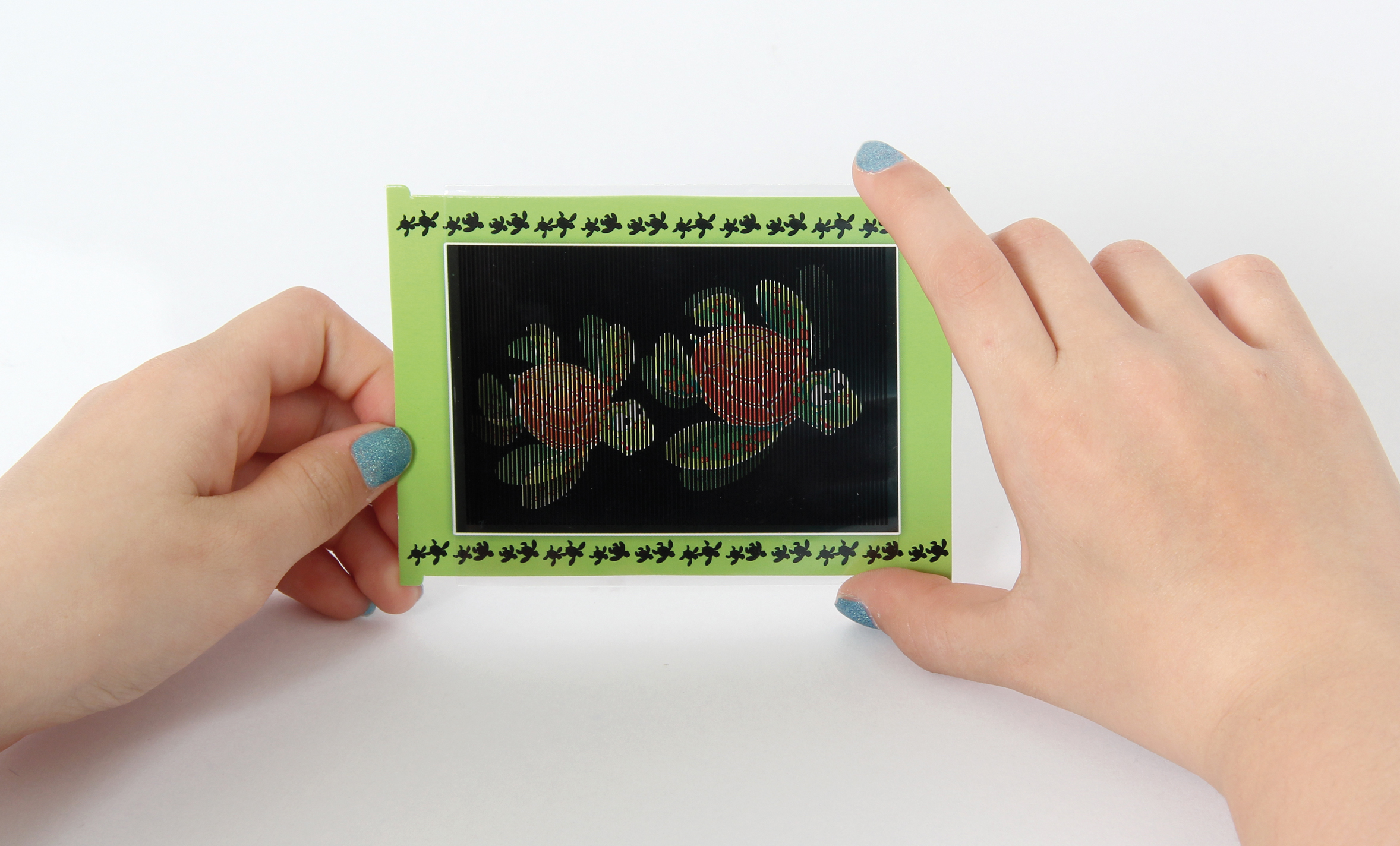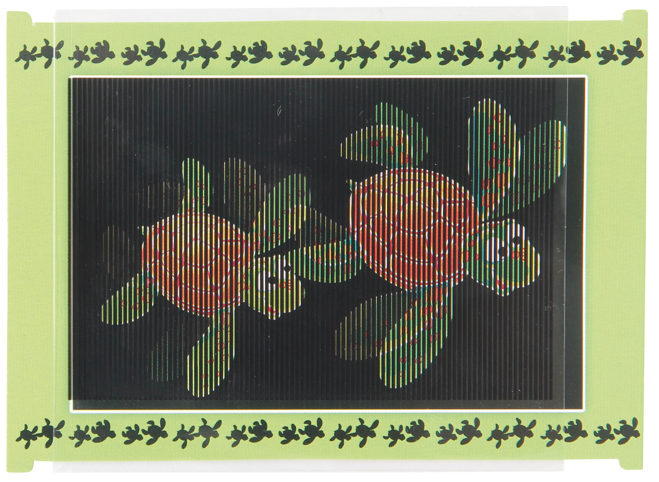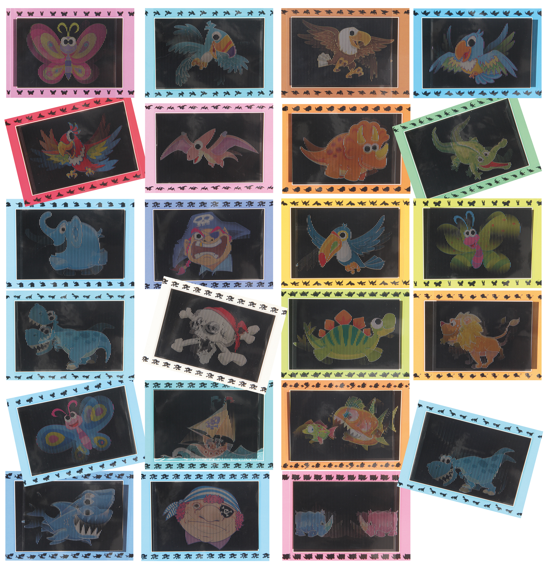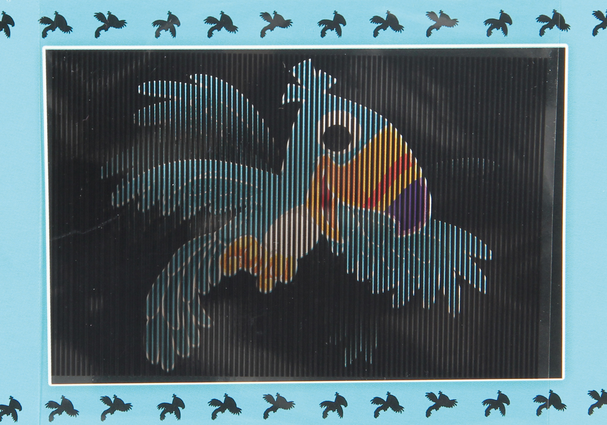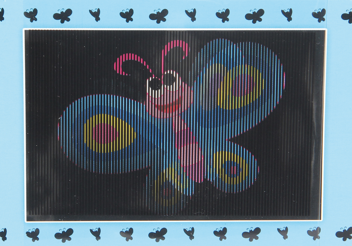 Durch Hin- und Herschieben der Rasterfolie entsteht ein optischer Effekt, durch den sich das Motiv auf der Karte scheinbar bewegt. Viele verschiedene Designs.