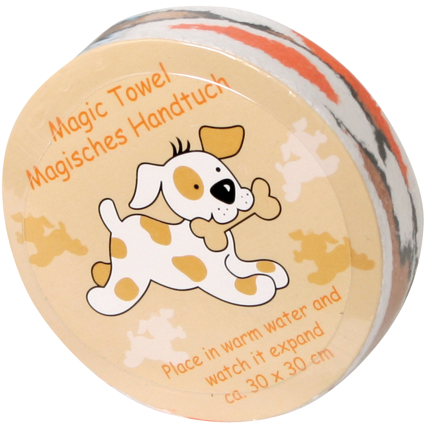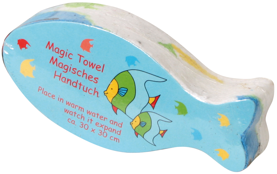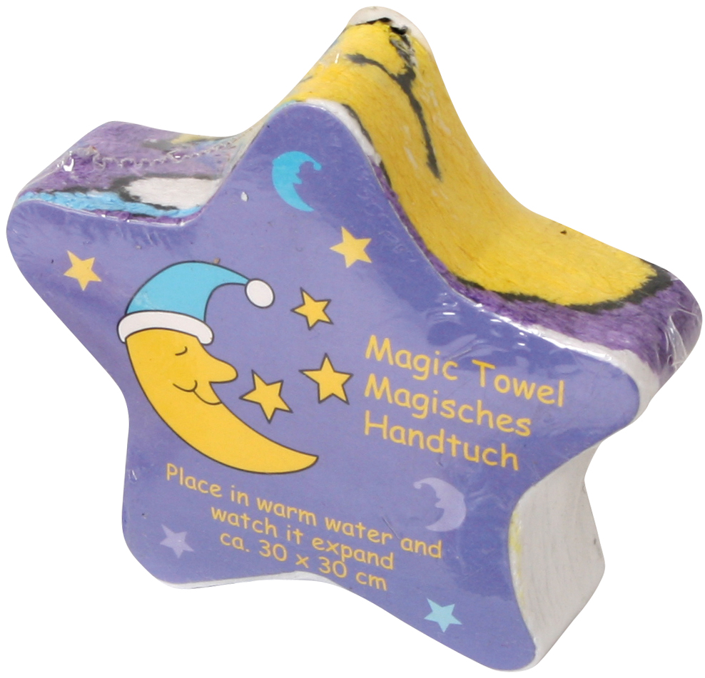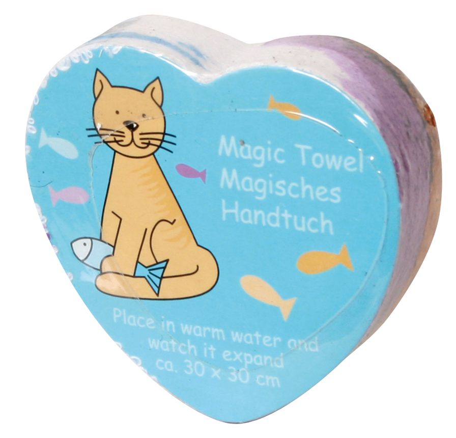 Das Päckchen wird, in warmes Wasser gelegt, wie von Zauberhand zum ca. 30 x 30 cm großen Handtuch. 100 % Baumwolle. Acht Dessins sortiert.