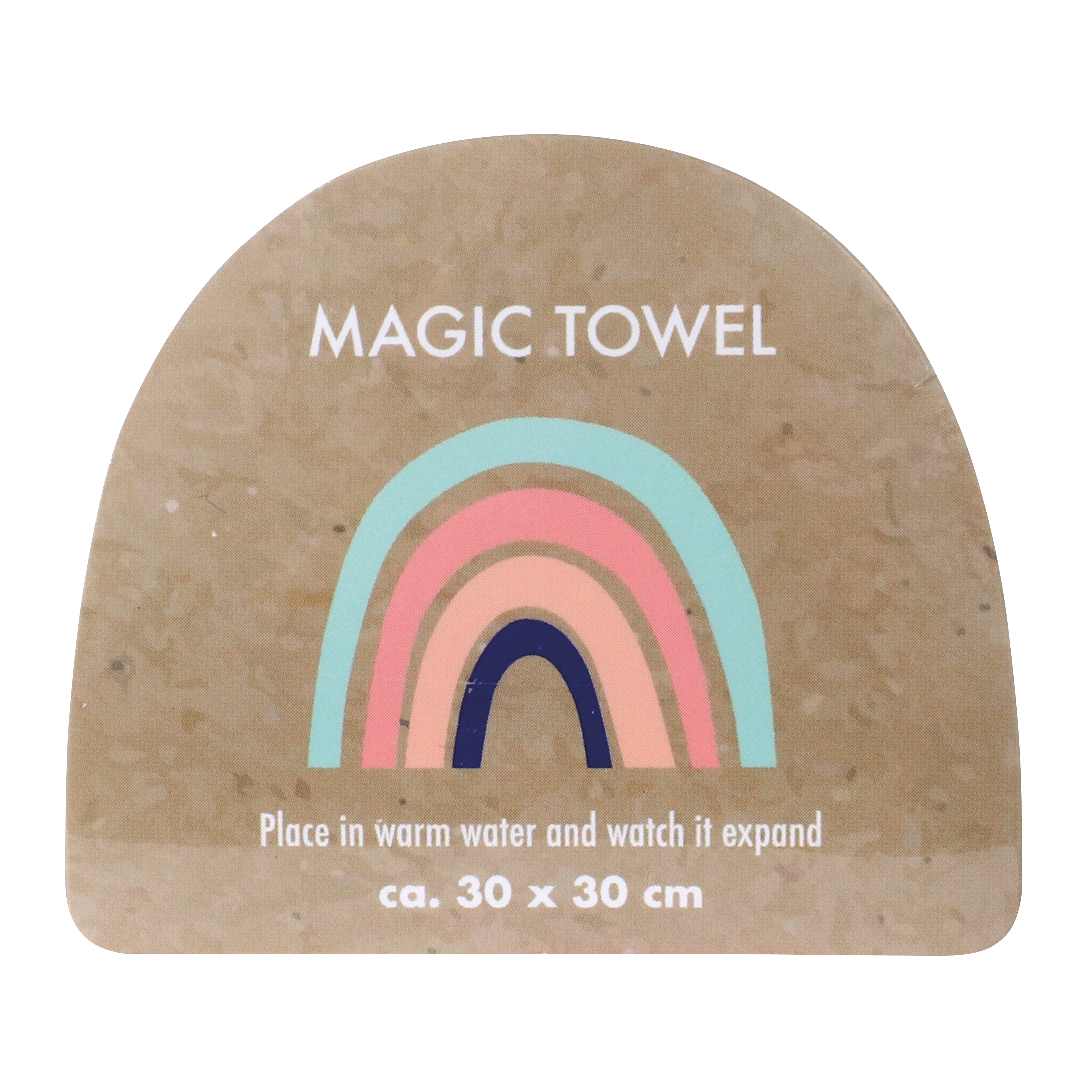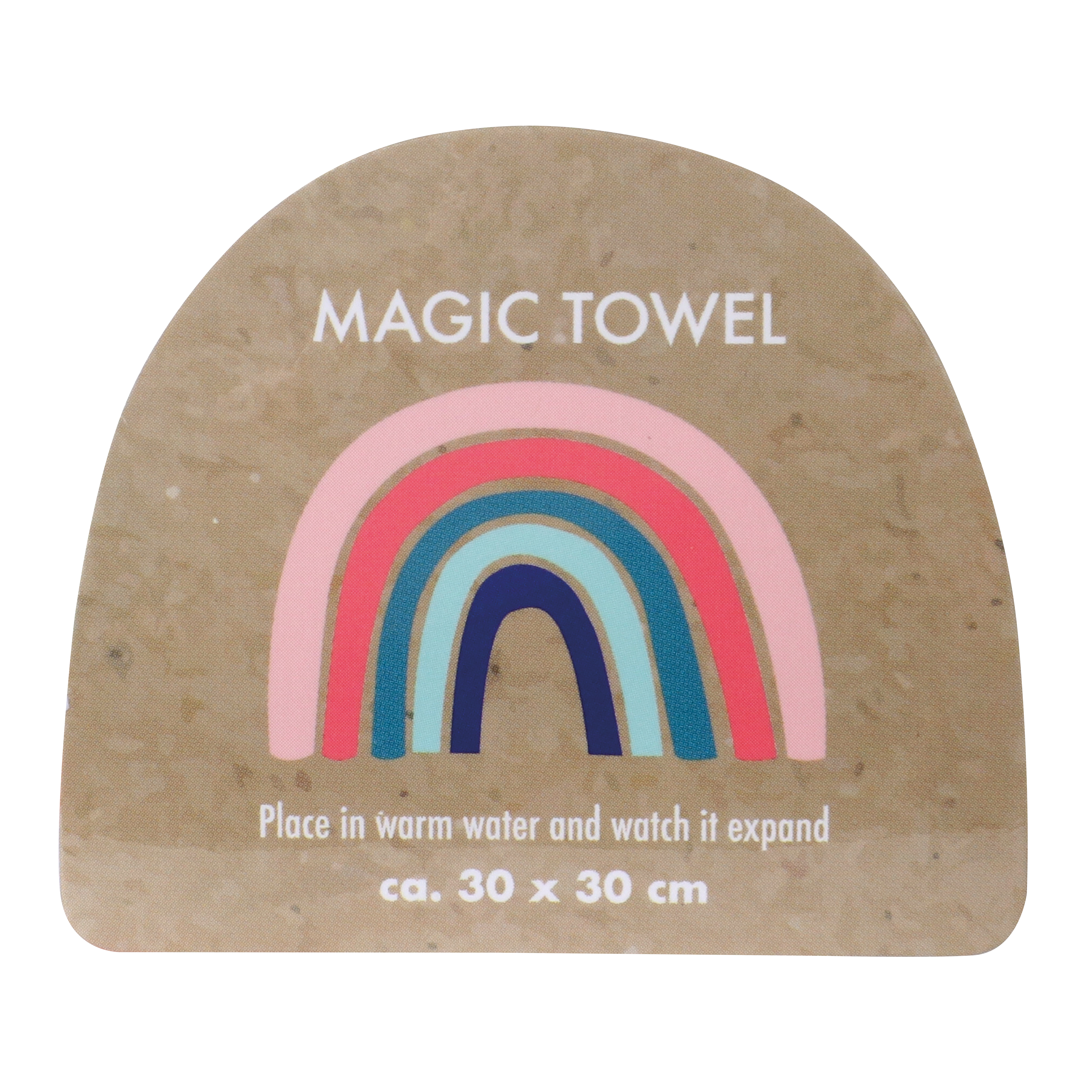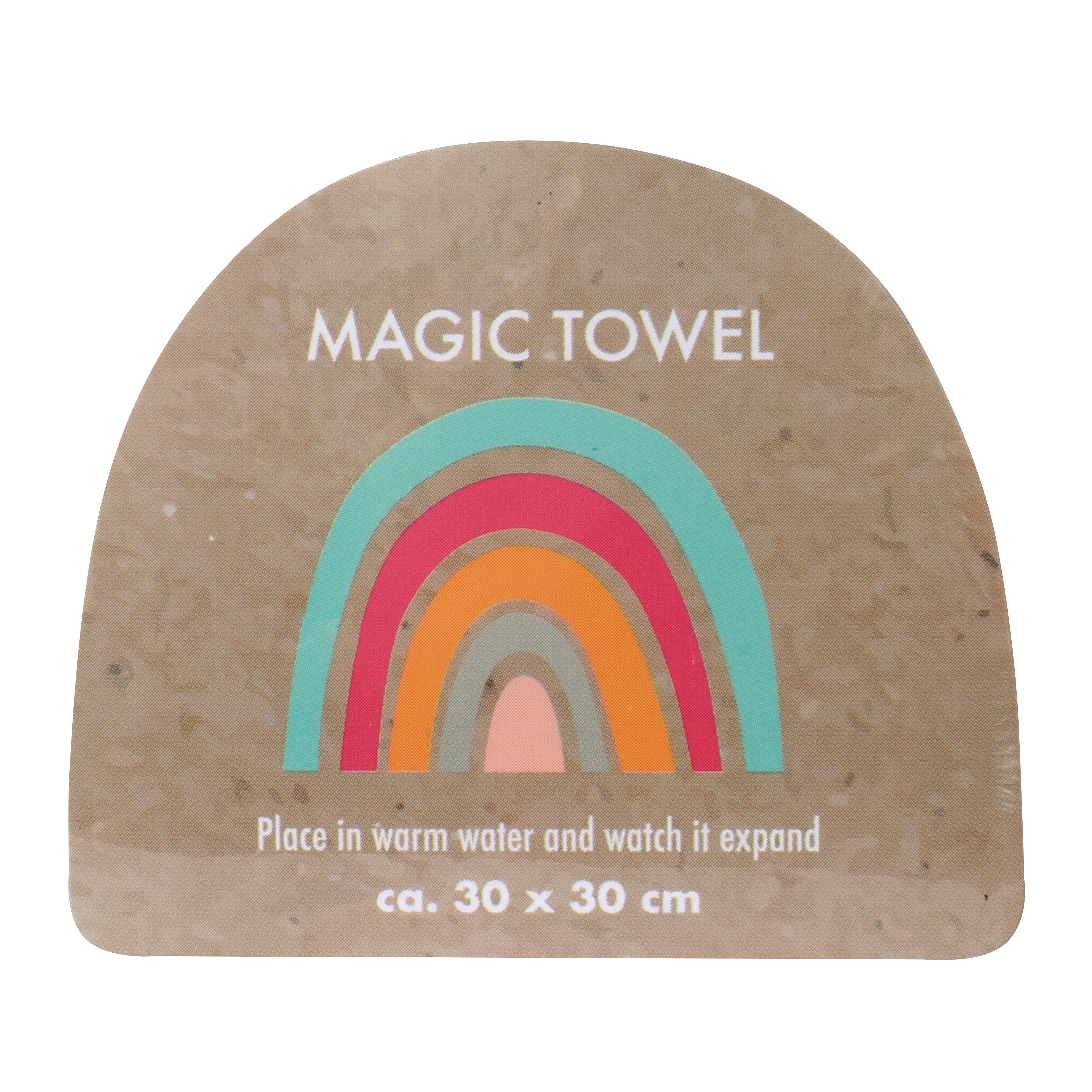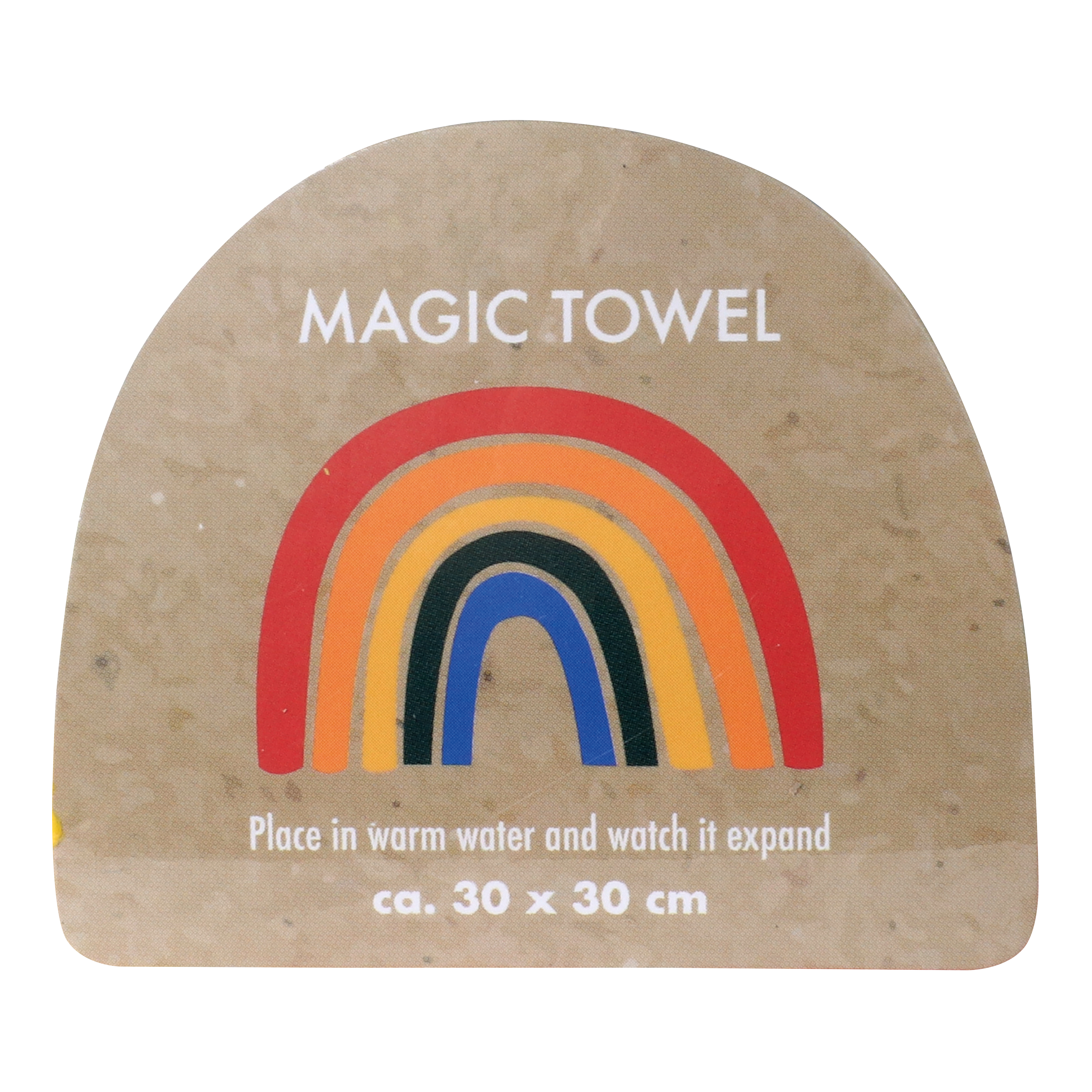 Das Päckchen wird, in warmes Wasser gelegt, wie von Zauberhand zum ca. 30 x 30 cm großen Handtuch. 100 % Baumwolle. Vier Dessins sortiert.