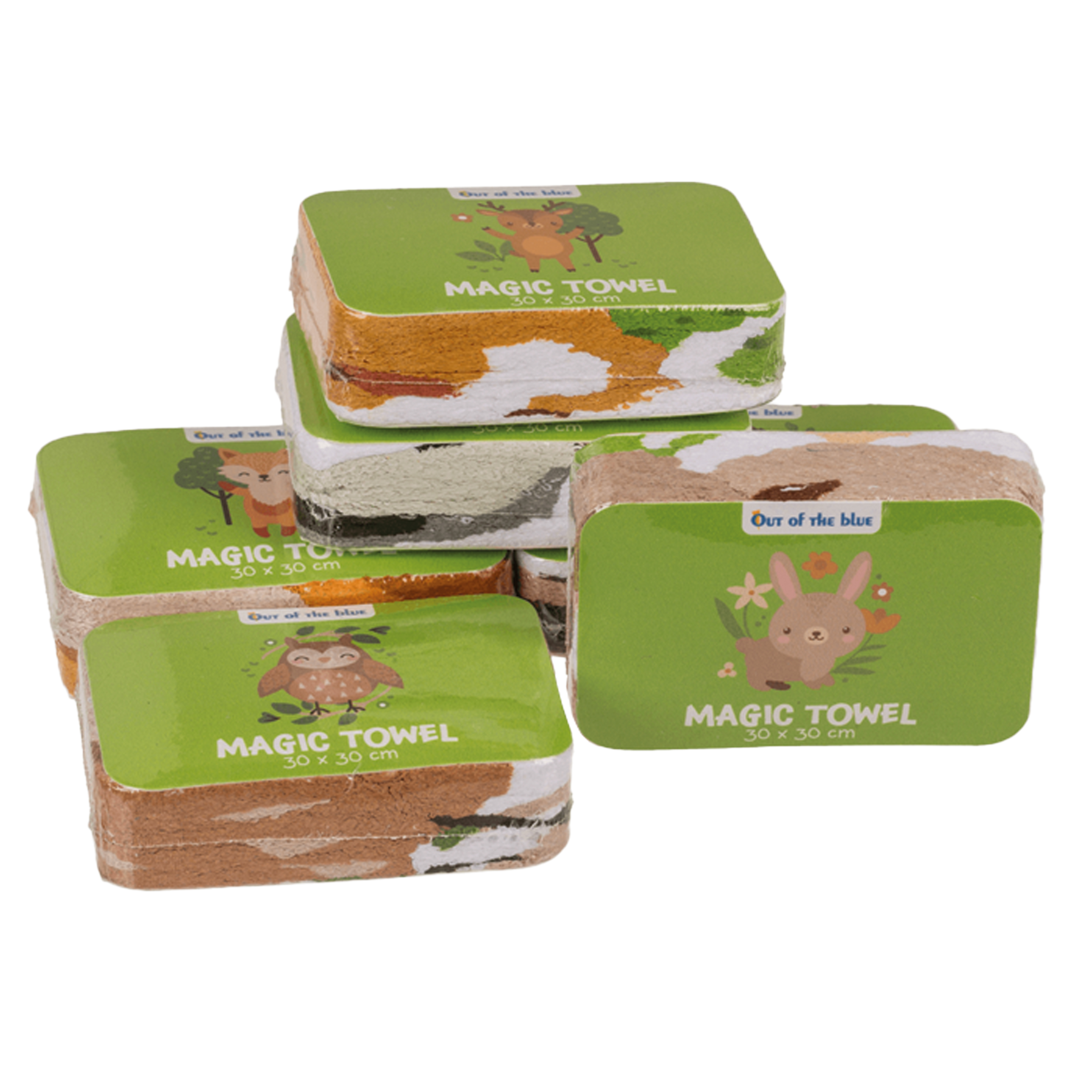 Das Päckchen wird, in warmes Wasser gelegt, wie von Zauberhand zum ca. 30 x 30 cm großen Handtuch. 100 % Baumwolle. Sechs Designs sortiert.