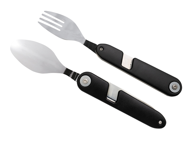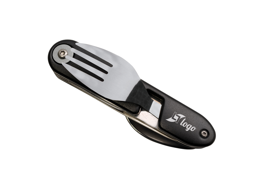 Faltbares Besteckset aus rostfreiem 420er Edelstahl für den Lebensmittelgebrauch. Griff aus Aluminium. 5 Funktionen: Messer, Gabel, Löffel, Dosenöffner und Flaschenöffner. Magnetische Verbindung zum Teilen des Produkts in zwei Teile, um eine Gabel und ein Messer oder einen Löffel zu bilden. Wird in einem melierten grauen Etui aus RPET geliefert. Die Vorteile in Kürze: - Elemente aus rostfreiem 420er Edelstahl für optimale Festigkeit und perfekte Lebensmittelkonformität. - Die beiden Teile werden durch ein raffiniertes magnetisches System zusammengehalten, um die Verwendung zu vereinfachen und die Reinigung zu erleichtern. - Präsentiert mit einem Etui aus RPET (recycelte Verpackung) statt einer wegwerfbaren Kartonverpackung.