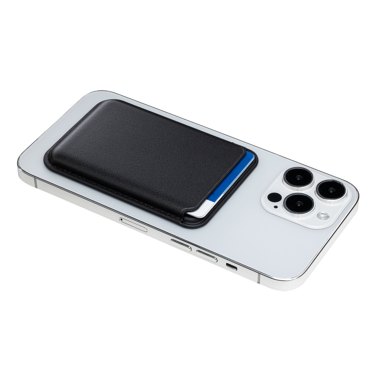 Klassische Portemonnaies nehmen viel Platz ein und sind durch bargeldlose Zahlungen oft überflüssig. Eine moderne Alternative bietet dieser schlanke Kartenhalter - RE98-Lefta. Das magnetische Kartenetui aus schwarzem Kunstleder bietet Platz für zwei Karten und lässt sich einfach an MagSafe®-kompatiblen Endgeräten anbringen. So können Sie ihn an die Rückseite Ihres Smartphones fixieren und haben Ihre wichtigsten Karten immer griffbereit. RE98-Lefta kombiniert eine robuste Edelstahlkonstruktion mit einem äußerst flachen Design von nur 7,5 mm Höhe. Dadurch bleibt Ihr Handy auch mit angebrachtem Etui schlank und kann weiterhin bequem genutzt werden. Dank der ovalen Aussparung in der Mitte des Etuis können Sie die Karten leicht hochschieben und herausnehmen, wenn das Etui nicht am Gerät ist. Das Kunstleder bietet eine ansprechende Optik und eine angenehme Haptik. Durch Tampondruck kommen Werbebotschaften auf der großzügigen Werbefläche perfekt zur Geltung. Geliefert wird RE98-Name in einer 1C-Geschenkverpackung. Apple® and MagSafe® are registered trademarks of Apple Inc., registered in the US and other countries.