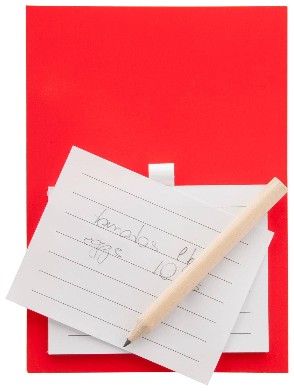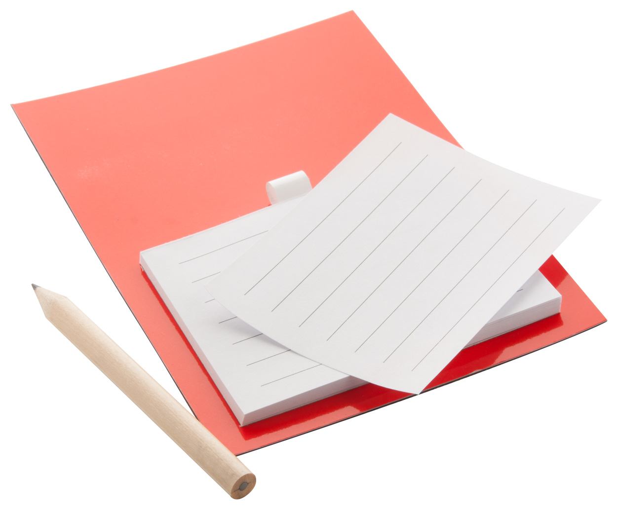 Farbiger Kühlschrankmagnet mit Notizblock (40 Seiten) und Mini-Bleistift.