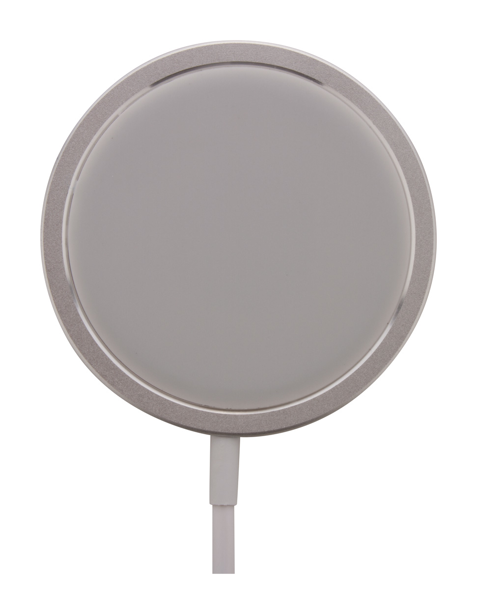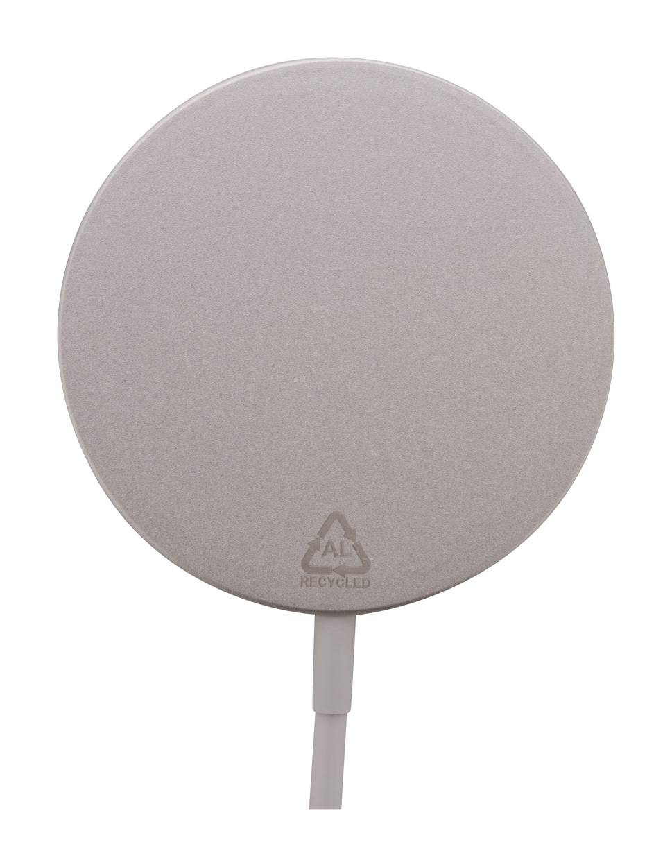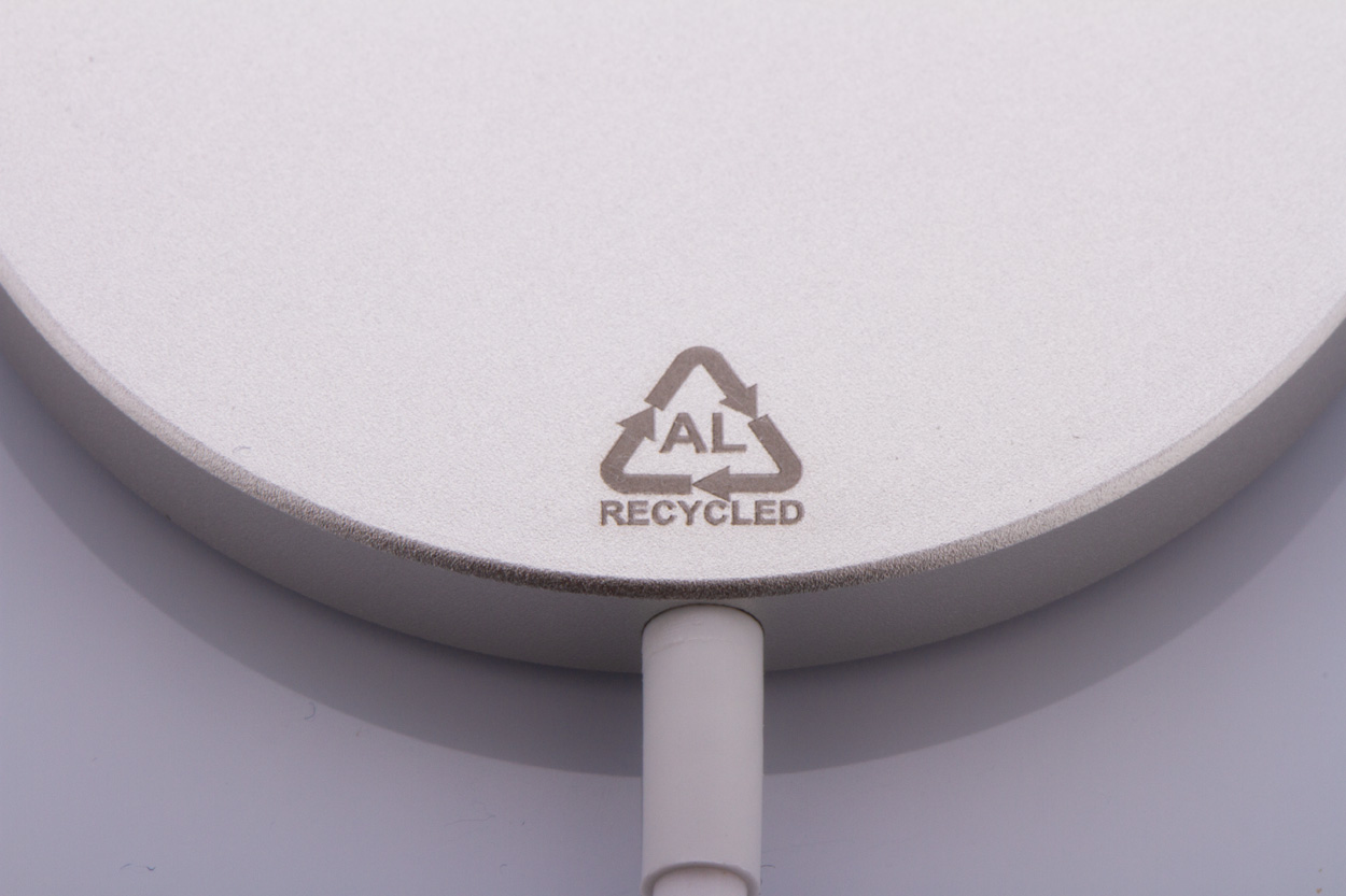 Wireless-Fast-Charger (10 W) im Gehäuse aus recyceltem Aluminium. Kompatibel mit iPhone® 12 oder neuer. Inklusive USB-C-Ladekabel.