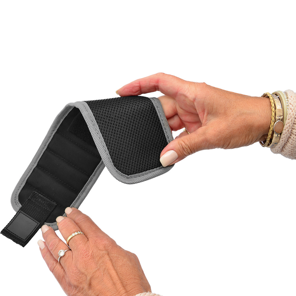 Material: 1680D Polyester, PVC und eingenähte Magnete (MdFeB Neodymmagnete). Funktionen: 3 magnetische Flächen (9 x 7 cm), individuell einstellbare Länge durch Klettverschluss. Verpackung: schwarze Geschenkverpackung.