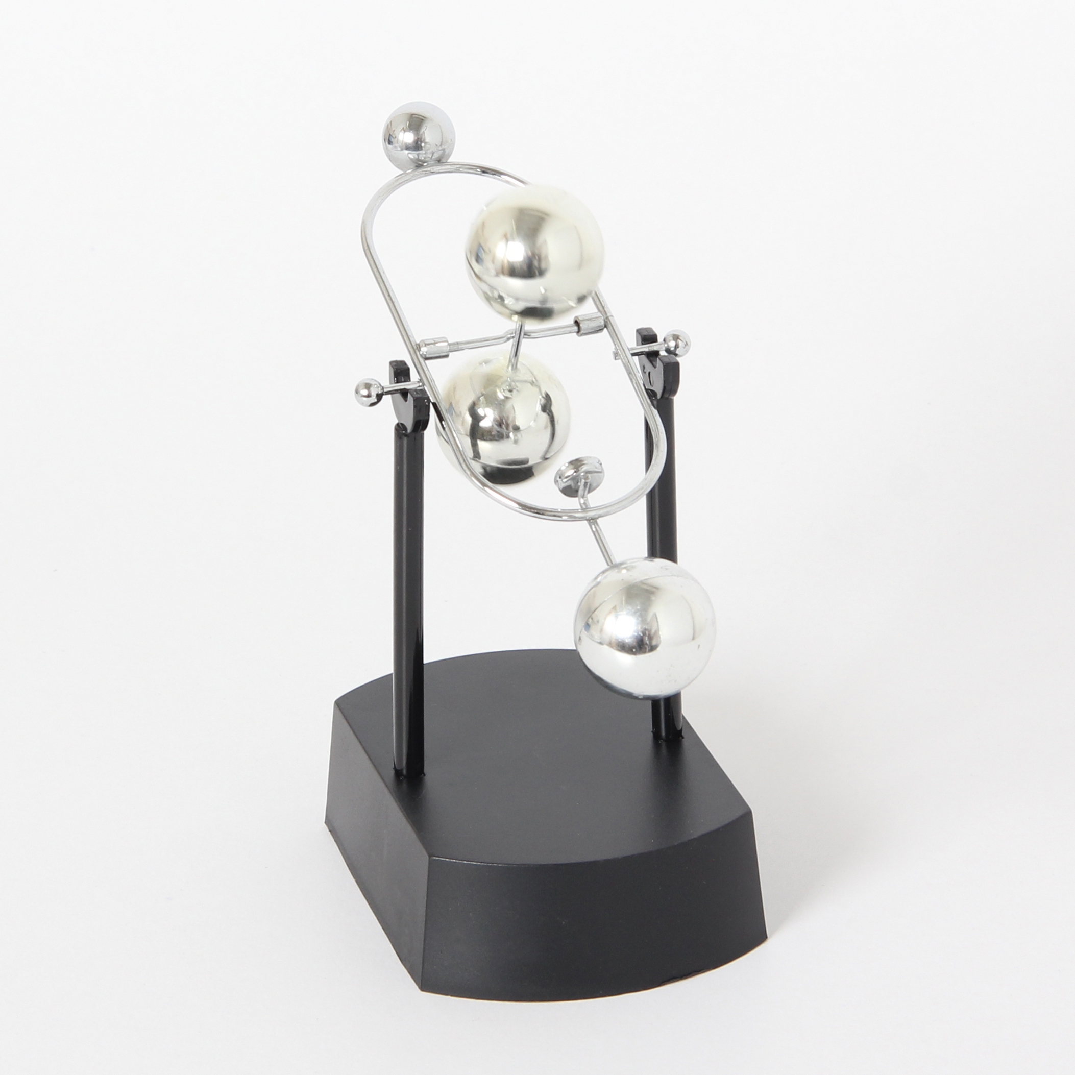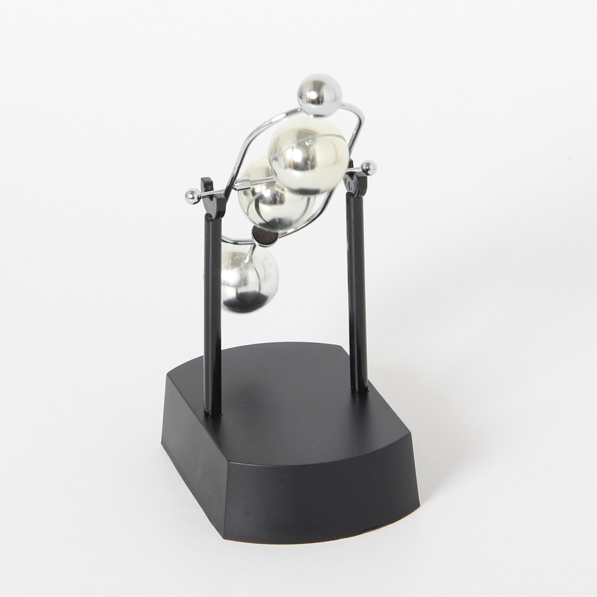 Durch die eingebauten Magnete schwingen die Kugeln auf ihren Bahnen. Mit eingelegter Batterie wird daraus scheinbar ein Perpetuum Mobile. (9V Batterie nicht enthalten.)