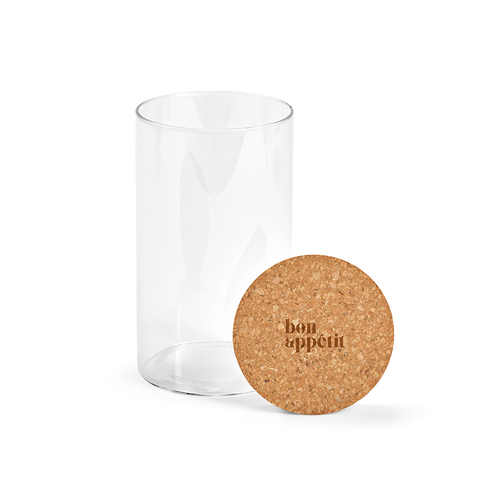 Der Magritte 1000 Behälter hat ein Fassungsvermögen von 1015 ml (1000 ml netto) und besteht aus Borosilikatglas mit einem Deckel aus Kork. Ob Getreide oder Süßigkeiten – er bewahrt Ihre Schätze frisch, sicher und stilvoll auf. Wird einzeln in einer Kraftkartonbox verpackt.