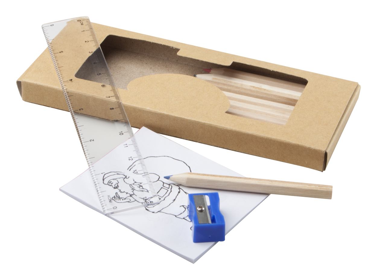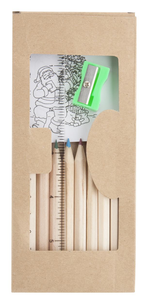 Malset mit 10 Buntstiften, Anspitzer, Lineal und Malbuch.