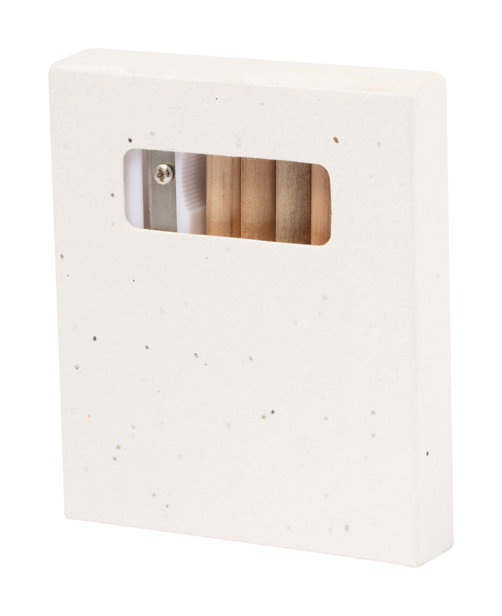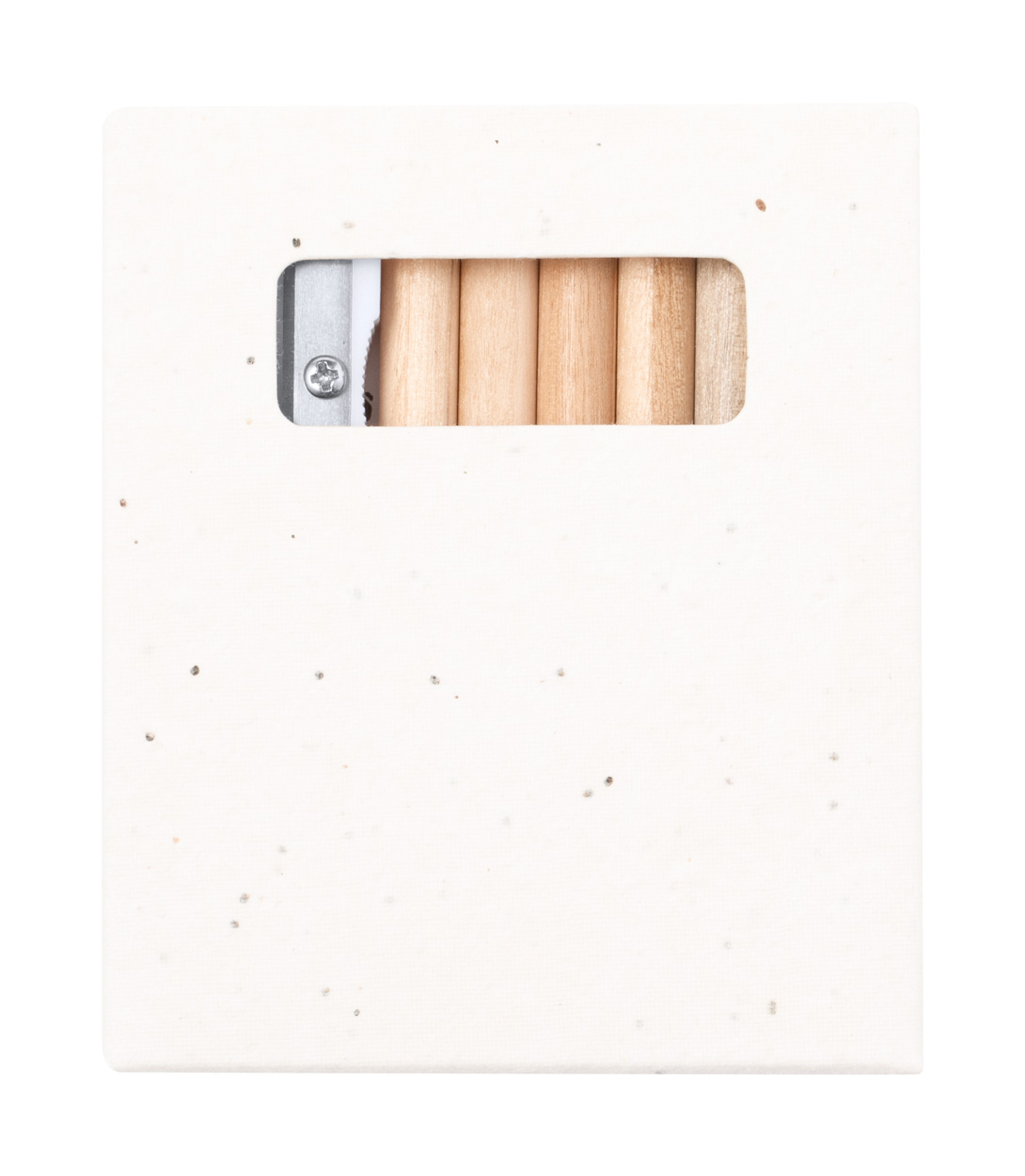 Malset in Saatpapier-Dose. Inklusive 6 Holzbuntstiften, Anspitzer und Malbuch (20 Blatt). In der Saatpapier-Dose sind Petuniensamen in verschiedenen Farben enthalten, die nach Gebrauch eingepflanzt werden können.