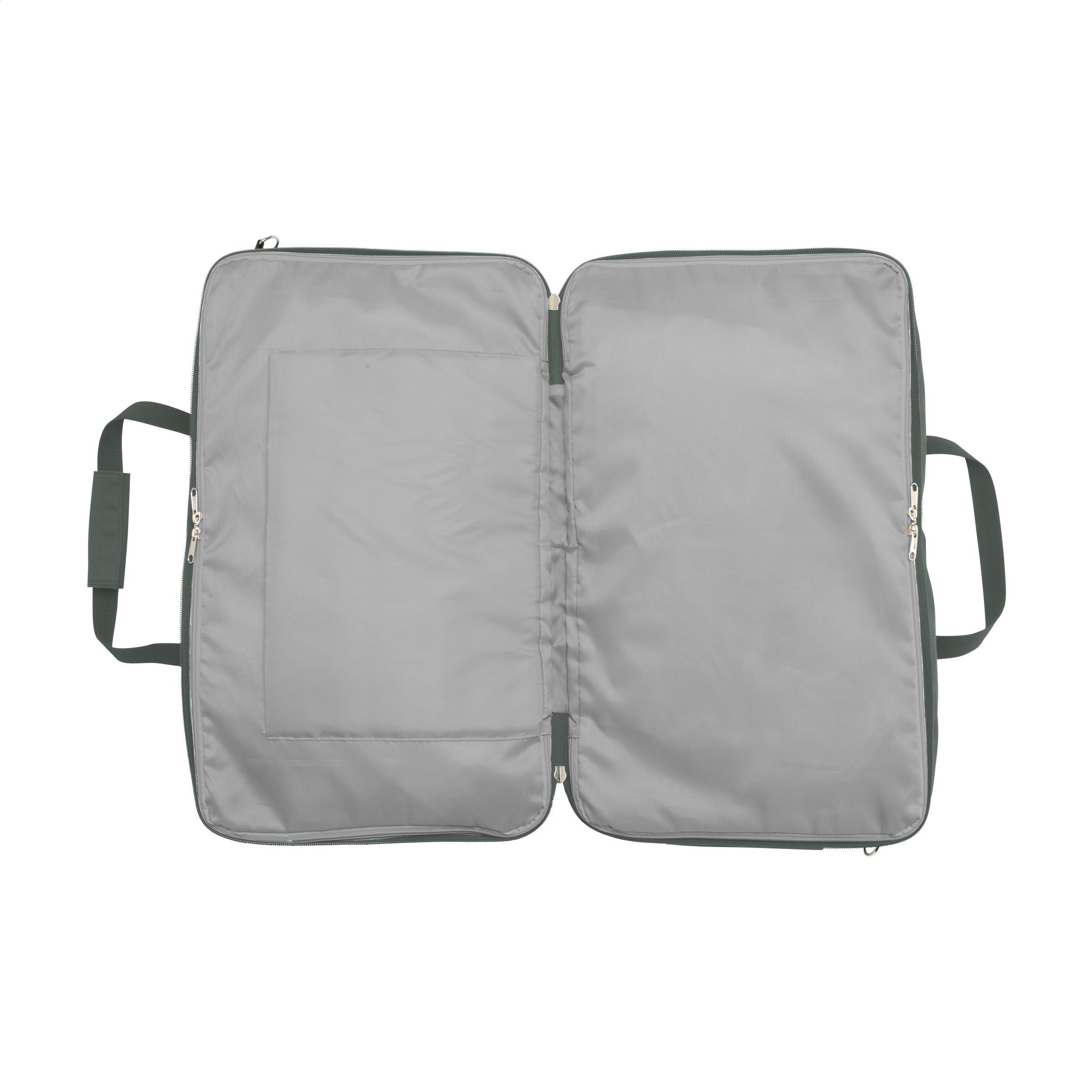 WoW! Praktische Wochenend-Reisetasche aus 600D RPET (hergestellt aus recycelten PET-Flaschen). Wenn der Reißverschluss vollständig geöffnet ist, lässt sich die Tasche komplett aufklappen. Zudem verfügt sie über 2 separate, geräumige Reißverschlussfächer. Mit den internen Packgurten zurren Sie Ihr Gepäck sicher fest. Für den sicheren Transport eines Laptops bis zu 13 Zoll verfügt die Tasche über ein separates Laptop-Fach. Darüber hinaus ist die Tasche mit schönen Innenfutter ausgestattet und verfügt über 2 stabile Tragegriffe, Schutznoppen und einen abnehmbaren, verstellbaren Schultergurt. An der Außenseite der Tasche befinden sich verschiedene Staufächer. Fassungsvermögen ca. 40 Liter.