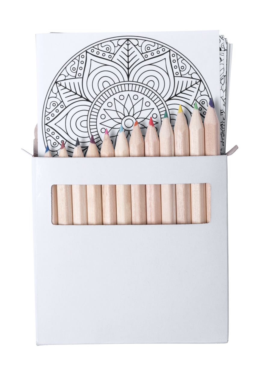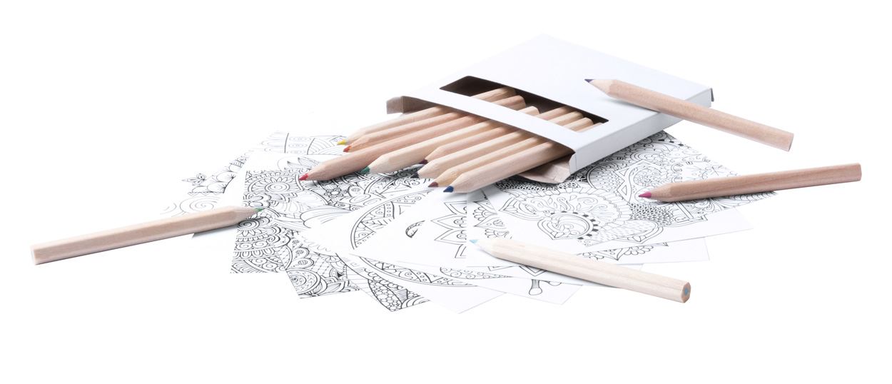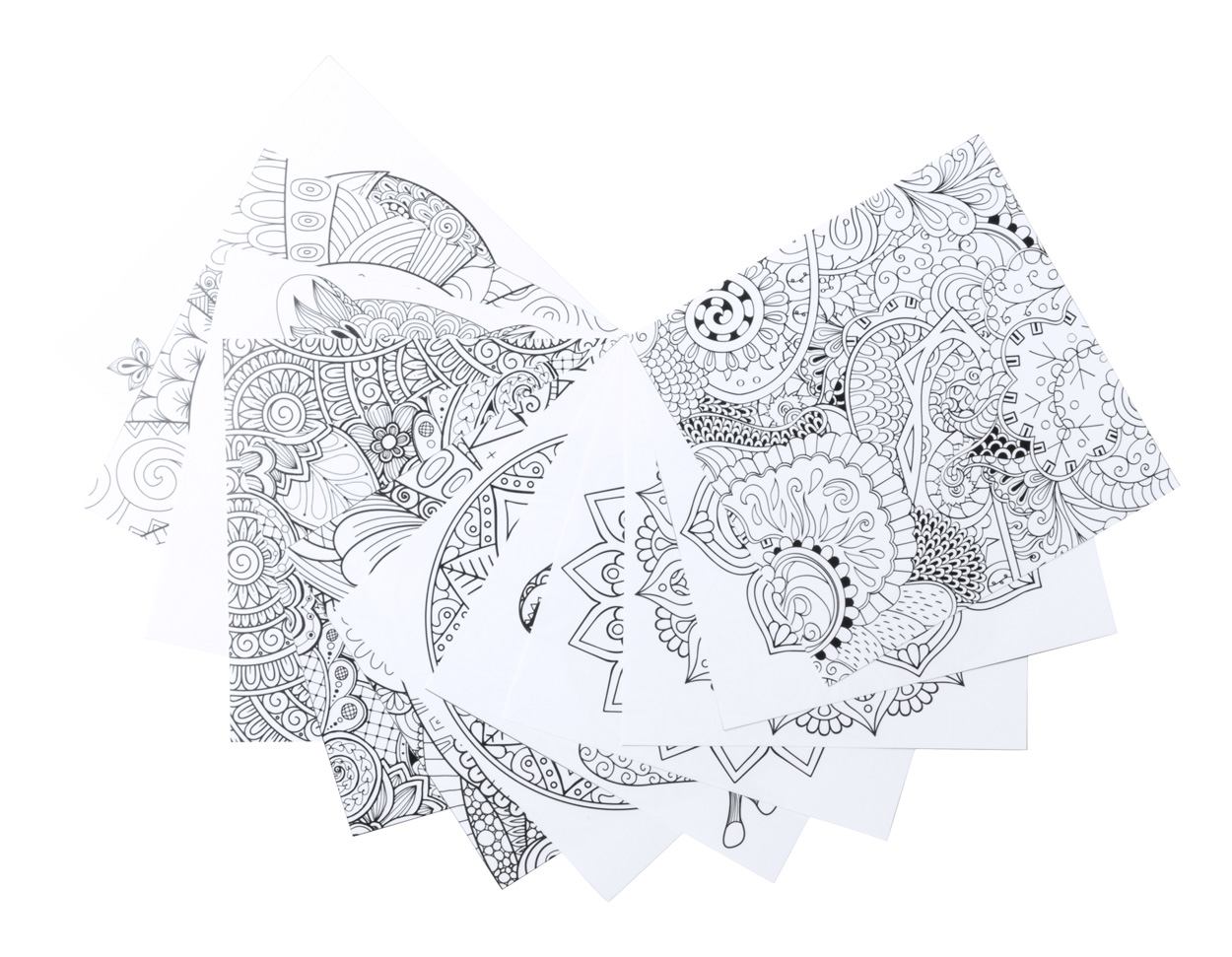 Mandala-Malset mit 12 Buntstiften und 12 Blättern mit Mandalamotiven.