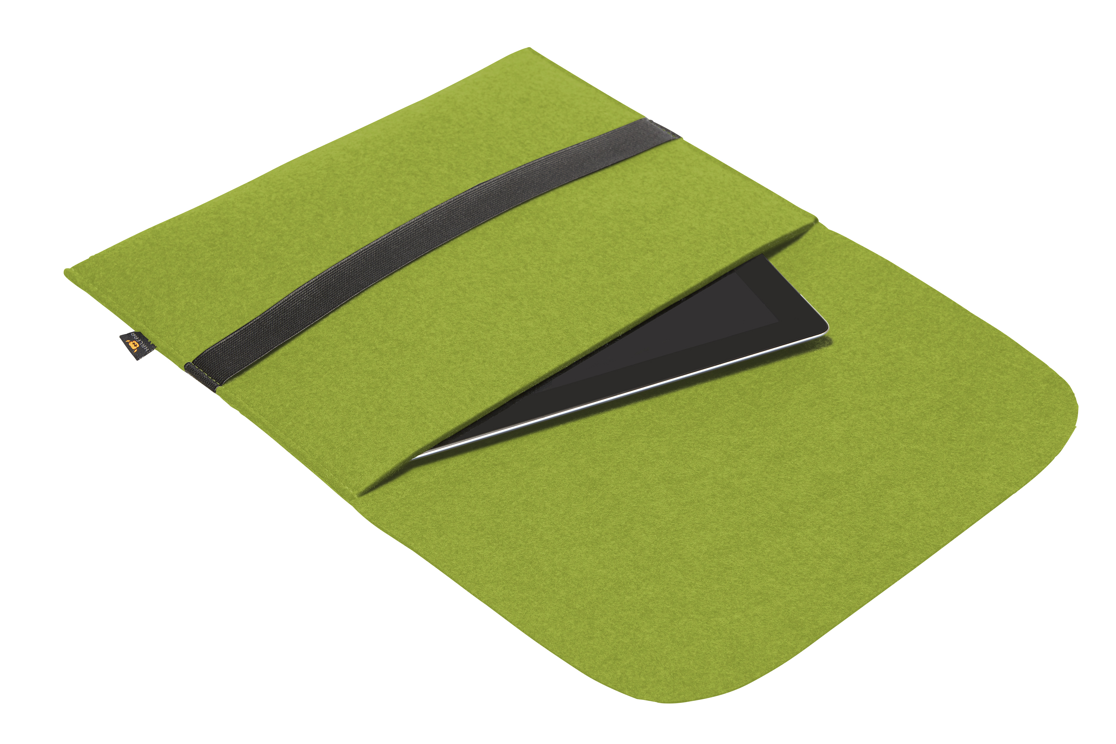 Wertige Filzhülle geeignet für DIN A4-Notizbücher und Tablets; elastisches Band zum Verschließen der Hülle