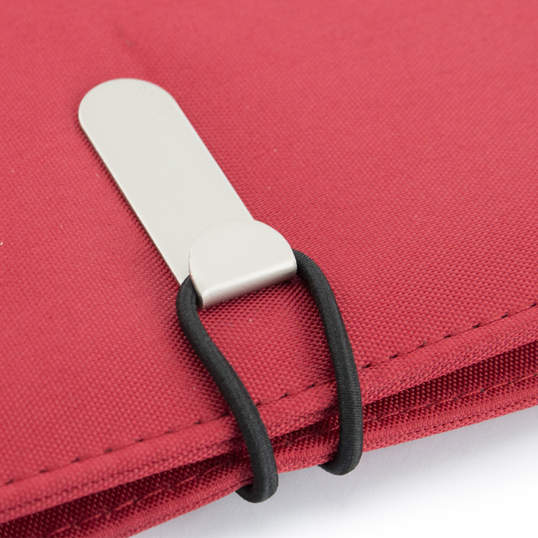 Elegante Mappe in lebendigen Farben aus weicher Mikrofaser. Gummibandverschluss mit Metallbefestigung - speziell für den Laserdruck entwickelt. Im Inneren mit herausnehmbarem Block mit 20 Blättern, 3 Klappentaschen, Kartenfächern und Stifthalter.