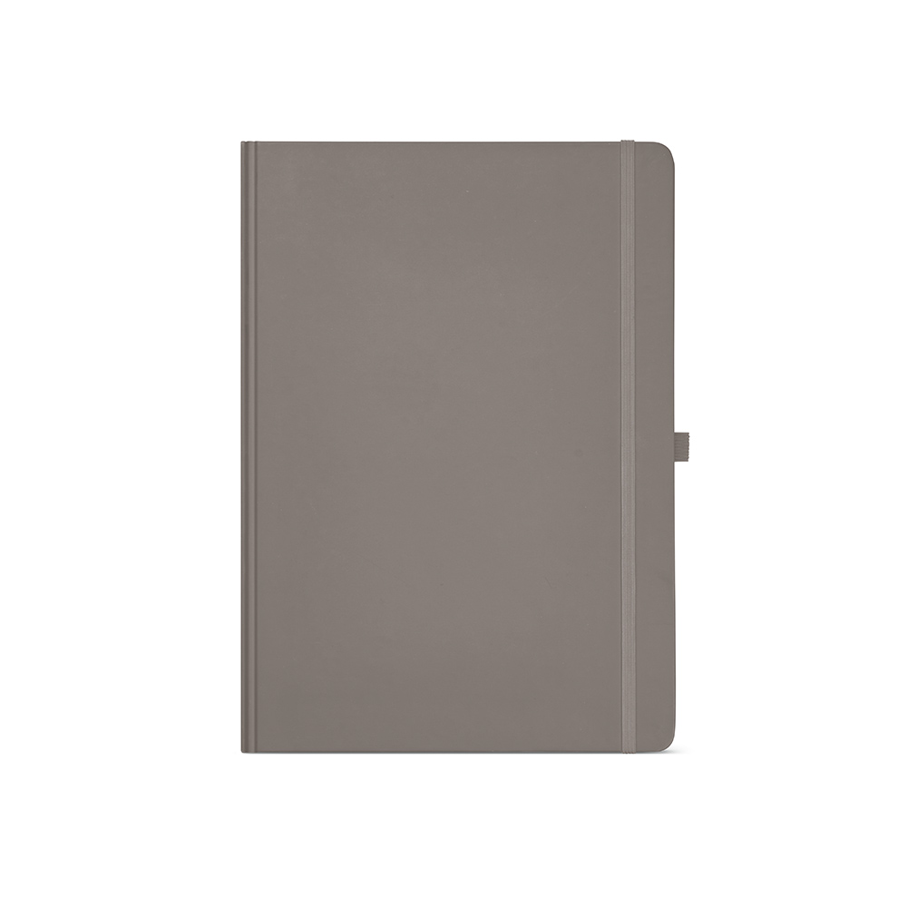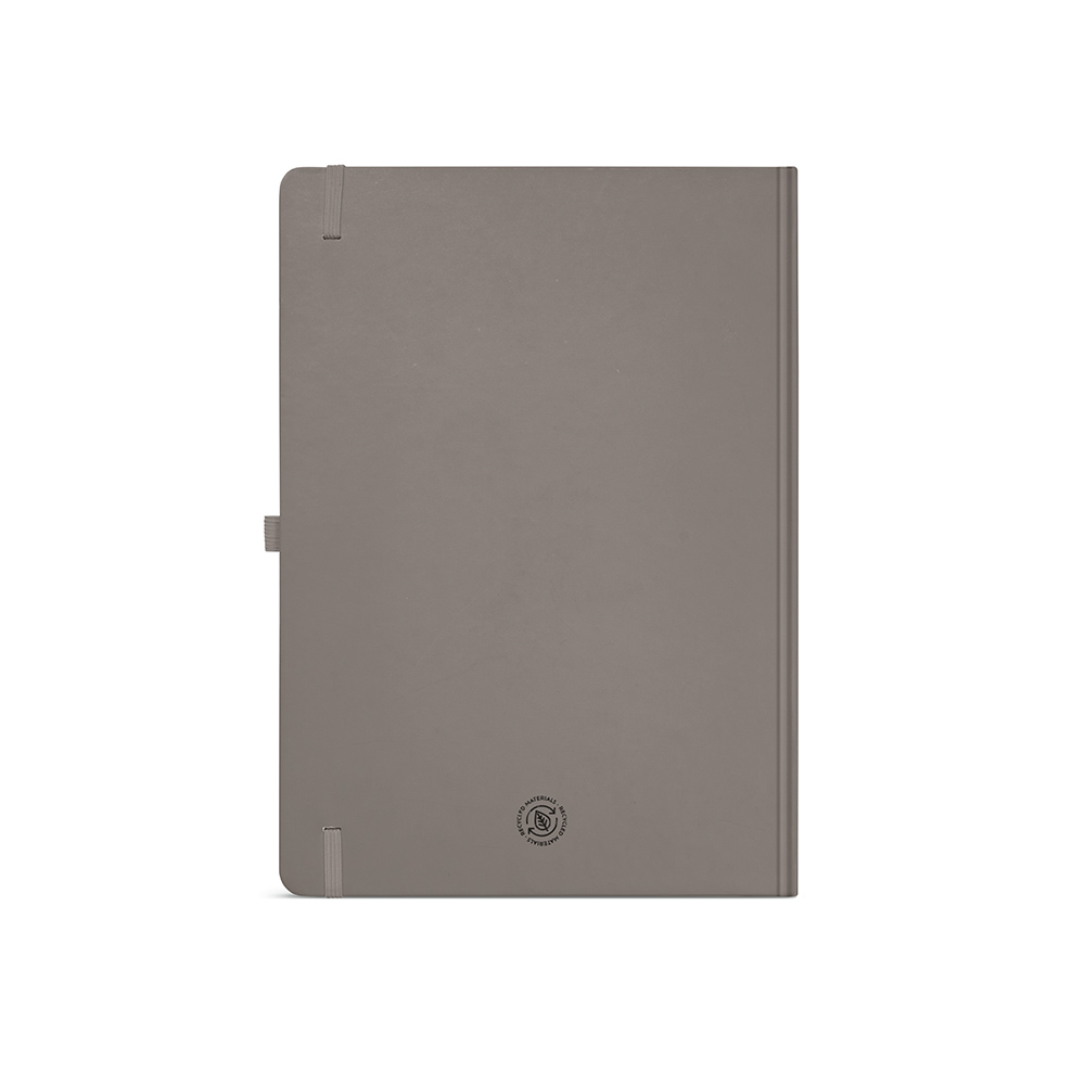 Marquez A4 Notizbuch mit Festeinband, hergestellt aus recyceltem Papier. Es enthält 240 linierte Seiten aus recyceltem, elfenbeinfarbenem 70 gsm Papier mit einem Bereich für Datum und Seitenangaben sowie ein Lesezeichenband. Das Gummiband zum Verschließen und die erweiterbare Innentasche sorgen für zusätzlichen Komfort.