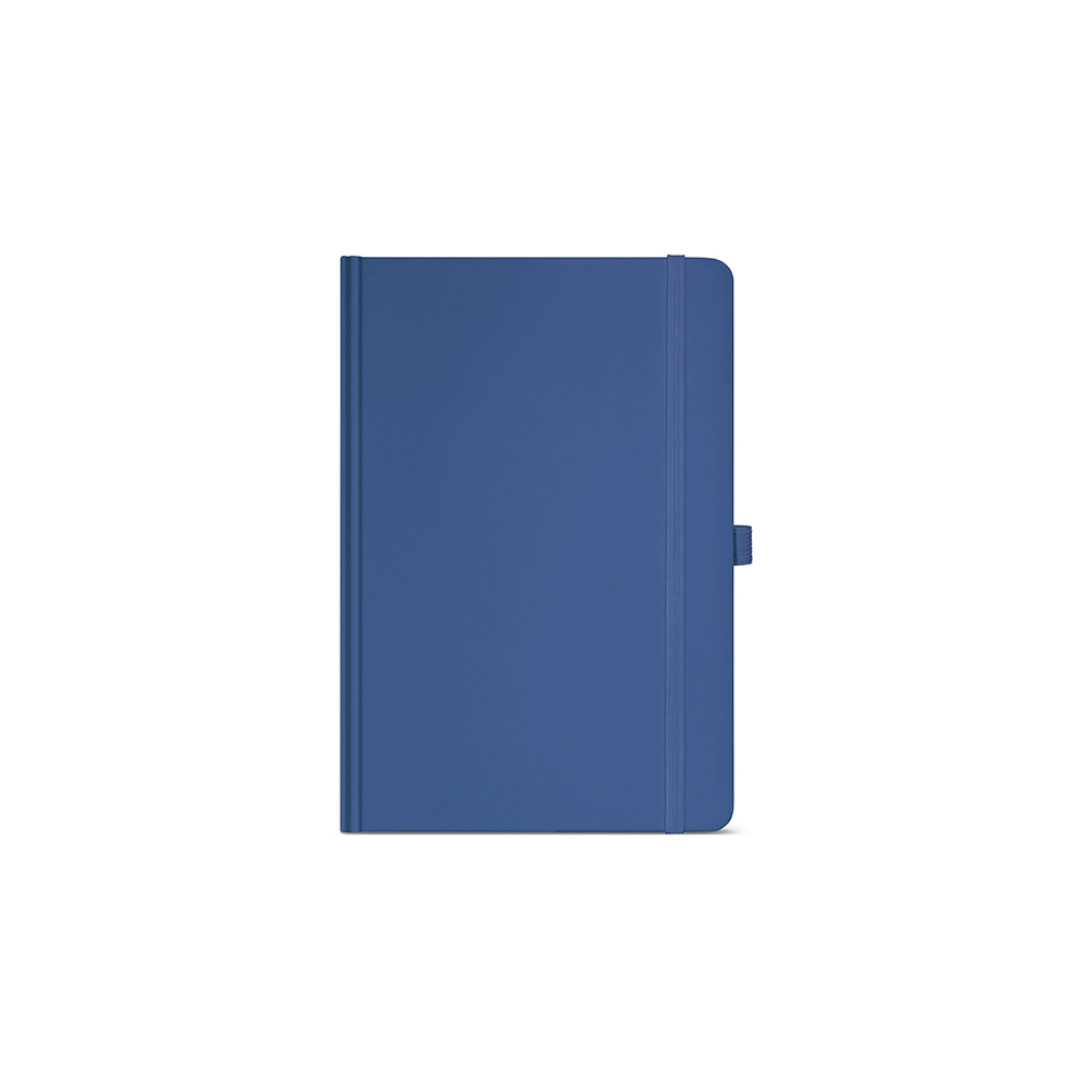 Marquez A5 Notizbuch mit Festeinband, gefertigt aus recyceltem Papier. Es enthält 196 linierte Seiten aus recyceltem, elfenbeinfarbenem 70gsm Papier, jede mit einem vorgesehenen Feld für Datum und Seitenzahl sowie einem Lesezeichenband. Das elastische Verschlussband und die erweiterbare Innentasche sorgen für zusätzlichen Komfort.