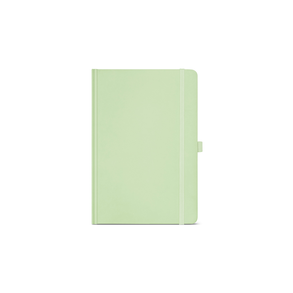 Marquez A5 Notizbuch mit Festeinband, gefertigt aus recyceltem Papier. Es enthält 196 linierte Seiten aus recyceltem, elfenbeinfarbenem 70gsm Papier, jede mit einem vorgesehenen Feld für Datum und Seitenzahl sowie einem Lesezeichenband. Das elastische Verschlussband und die erweiterbare Innentasche sorgen für zusätzlichen Komfort.