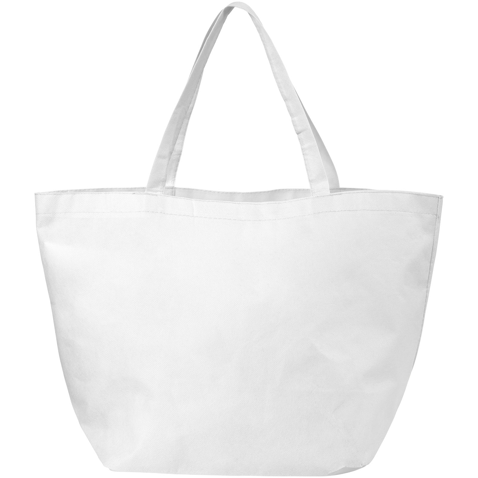 Die Maryville-Tragetasche ist eine gute Alternative zur Einweg-Plastiktüte. Sie bietet genügend Platz für den Aufdruck von Logos oder Texten, und der Vliesstoff macht die Tragetasche robust und vielseitig einsetzbar. Die Griffe sind 18 cm lang, so dass die Tragetasche leicht in der Hand oder über der Schulter getragen werden kann. In dem großen Hauptfach lassen sich außerdem problemlos mehrere Gegenstände verstauen. Kurzum: die ideale Tasche zum Einkaufen oder für einen Tag am Strand oder im Park. Belastbar bis zu 10 kg.