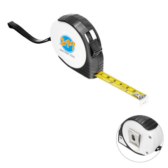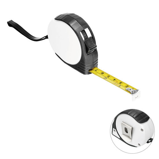 Maßband mit cm- und Inch-Einteilung, Feststeller, Rückholfunktion, Clip und Handschlaufe