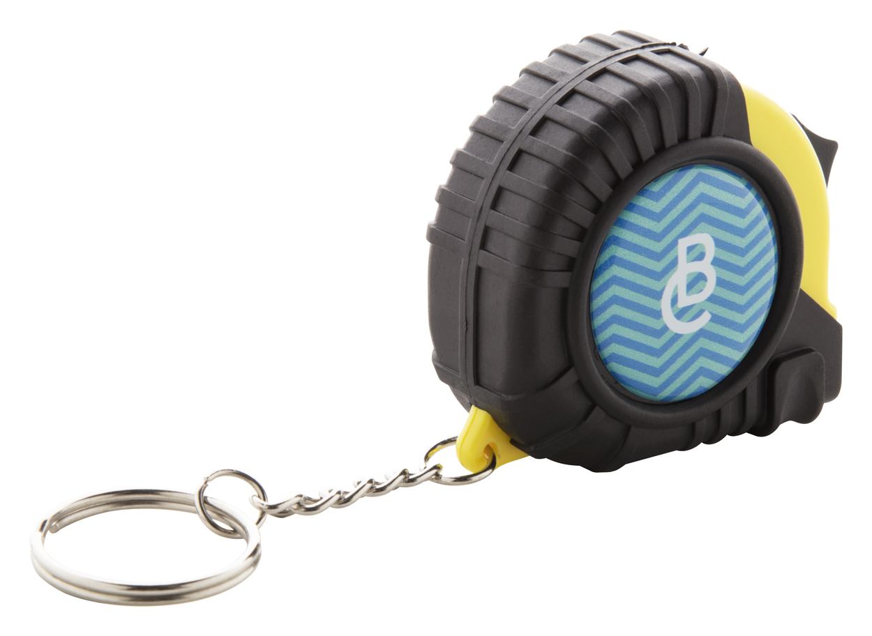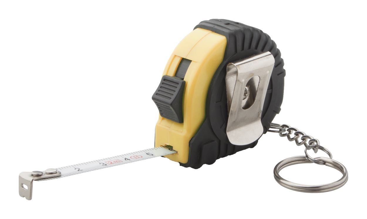 Maßband aus Kunststoff mit Stopper, Metallclip und Schlüsselring. 2 m.