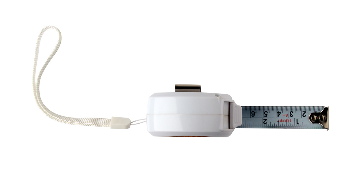 Maßband aus Kunststoff und Bambus mit Haltefunktion, Metallklip und Handschlaufe, 5 m.