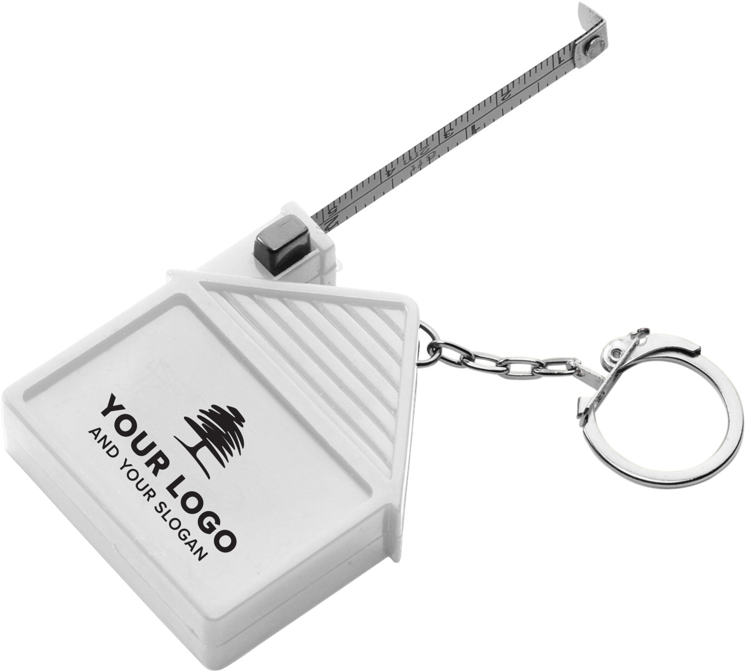 Maßband aus Kunststoff, mit Metall-Schlüsselring, Messbereich ca. 2 m.