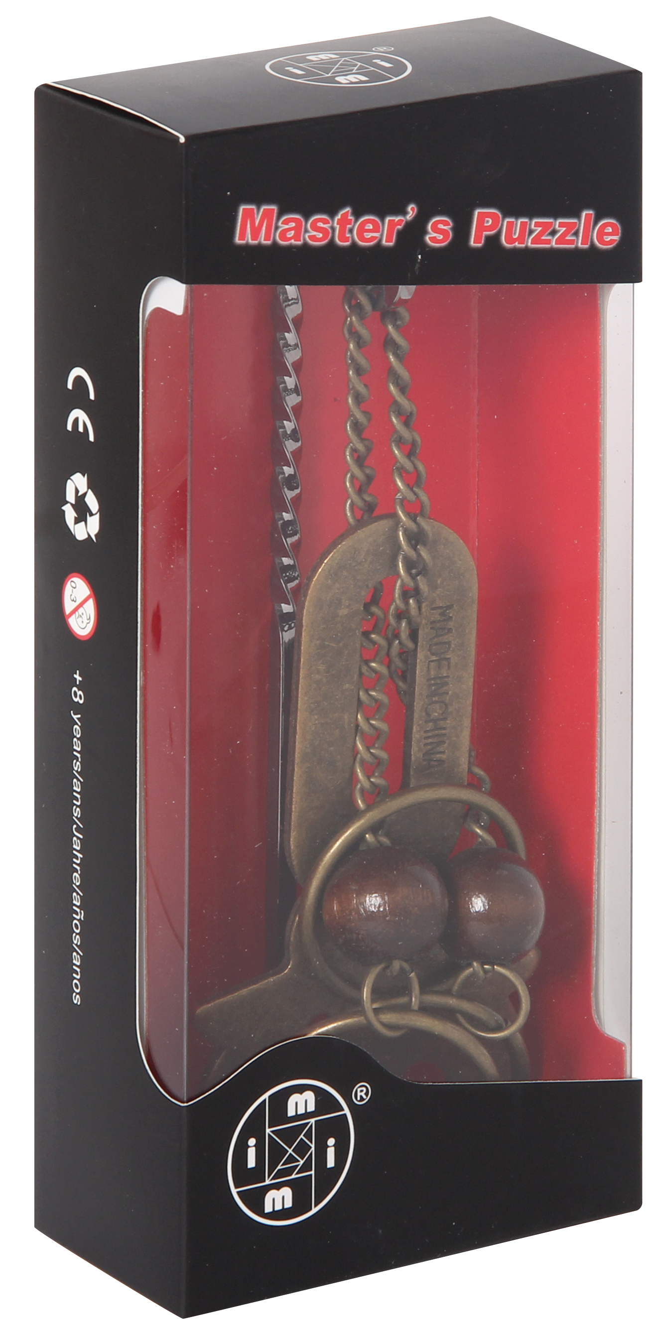 Inklusive Metallständer. In Geschenkkarton. Höhe des Ständers: 18 cm. Puzzlelänge: 27 cm. Aufgabe des Metall-Puzzles st es, einen Teil vom Rest zu trennen. Ab 8 Jahren.
