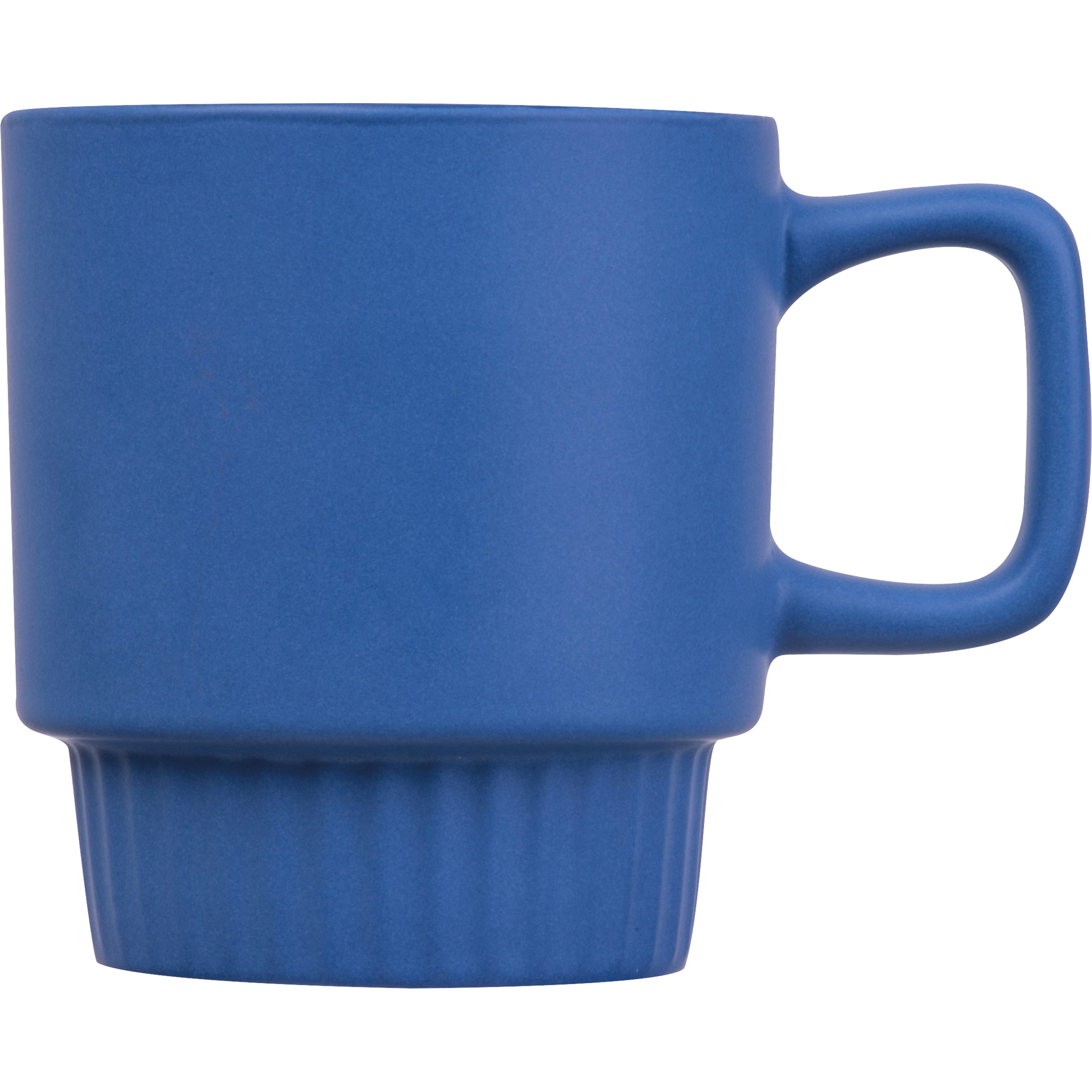Keramiktasse mit geriffeltem unteren Teil und 300ml Fassungsvermögen. Mattes Finish, liegt angenehm in der Hand und ideal für Heißgetränke. Ihre Werbung drucken wir auf die Tasse.