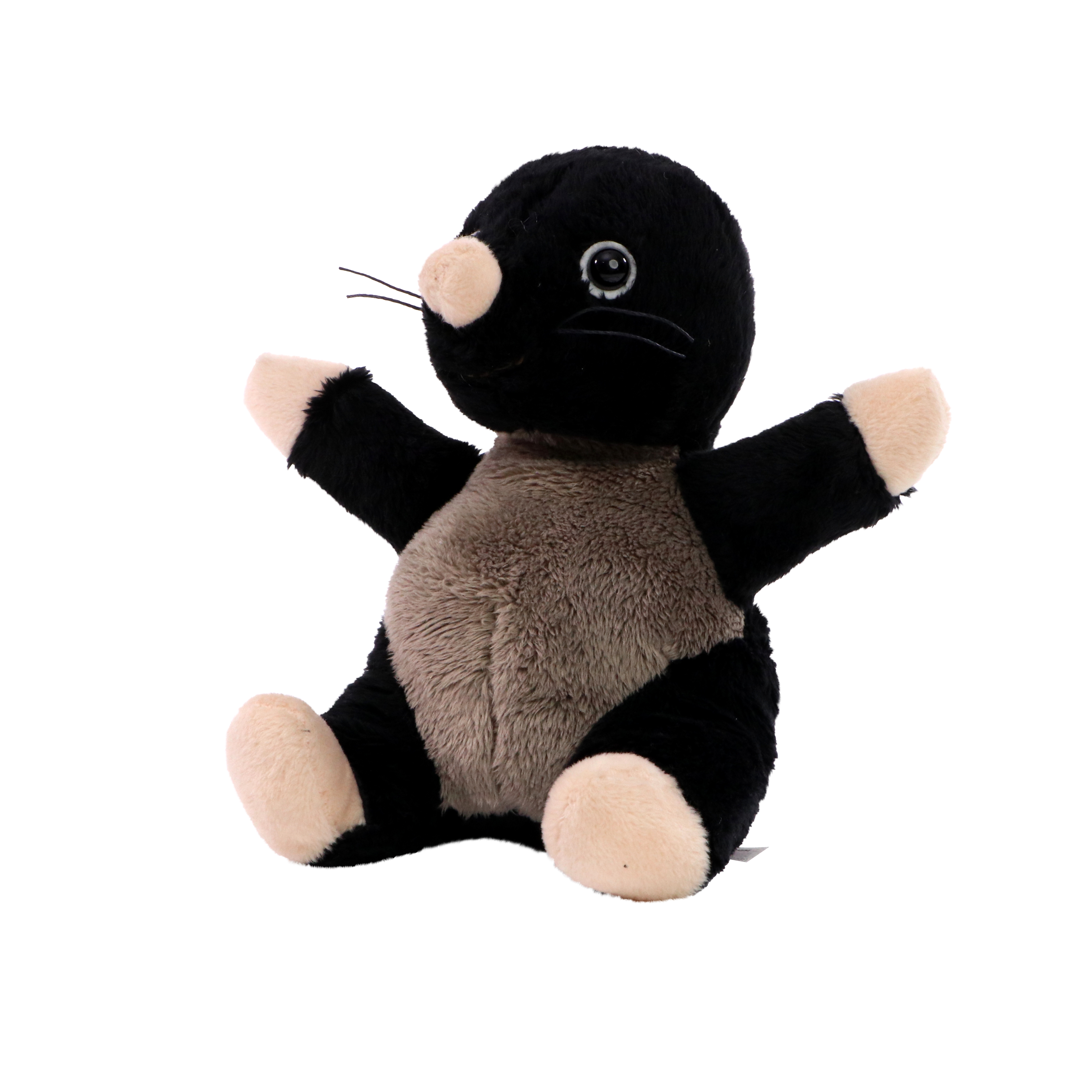 Unser Maulwurf Leve fordert mit seinem schwarzen Fell und dem grauen Bauch, der beigen Hände, Füße und Schnauze zum Kuscheln auf. Und keine Sorge, er wird keine Hügel in Ihrem Garten hinterlassen, er will nur kuscheln und ist dank des schmuseweichen Plüschs ein lustiger kleiner Geselle, der sich gerne in den Arm nehmen und knuddeln lässt. Leve ist ein Teil der lustigen Tierparade.