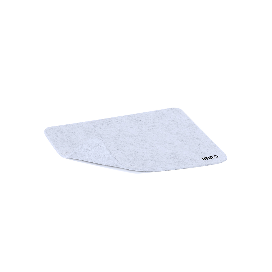 Elegantes Mauspad aus weichem RPET-Filz. Mit einer rutschfesten Silikonunterlage, die dafür sorgt, dass es bei der Benutzung fest an seinem Platz bleibt. Enthält verschiedene RPET. Präsentiert in einer individuellen, recycelten Tasche. Der recycelte RPET-Filz ist das Ergebnis der Kombination des Recycling-Prozesses von Kunststoffen mit der jahrtausendealten Technik der Filzherstellung, was zu einem Öko-Trend-Material führt, das nicht nur recycelten Ursprungs ist, sondern auch wiederverwertet werden kann.