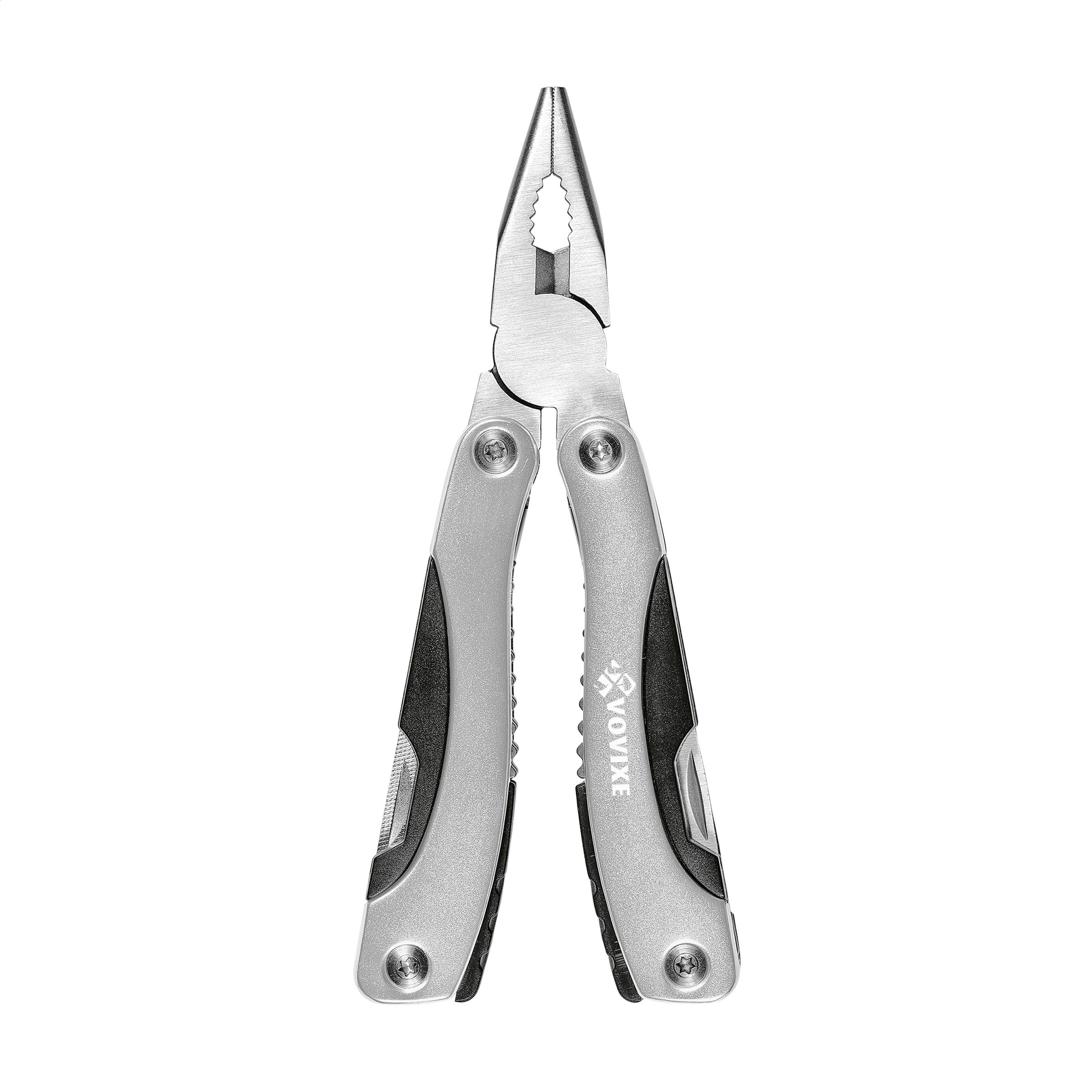 Kompakte Multizange aus Edelstahl mit Handgriff aus Aluminium im Metalliclook. 9-teilig mit 13 Funktionen: Zange, Isolierzange, 3 Schraubenzieher, Reibahle, Feile, Dosenöffner, Kapselheber, Fischentschupper, Haken-Entferner, Messer, Kreuzschraubenzieher. Mit Schloss. In einem Nylonetui. Beachten Sie, dass möglicherweise lokale Vorschriften für den Besitz und / oder das Tragen von Messern oder Multitools in der Öffentlichkeit gelten. Wird einzeln in einem Kraftkarton geliefert.