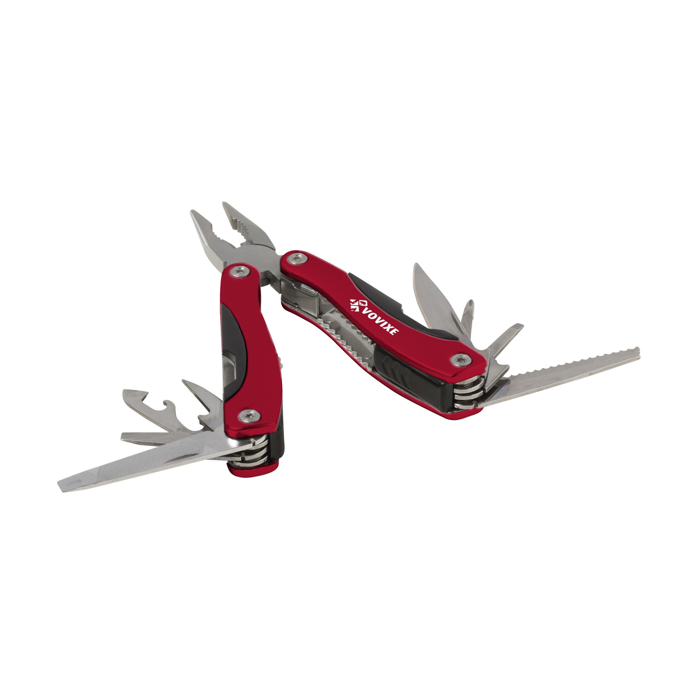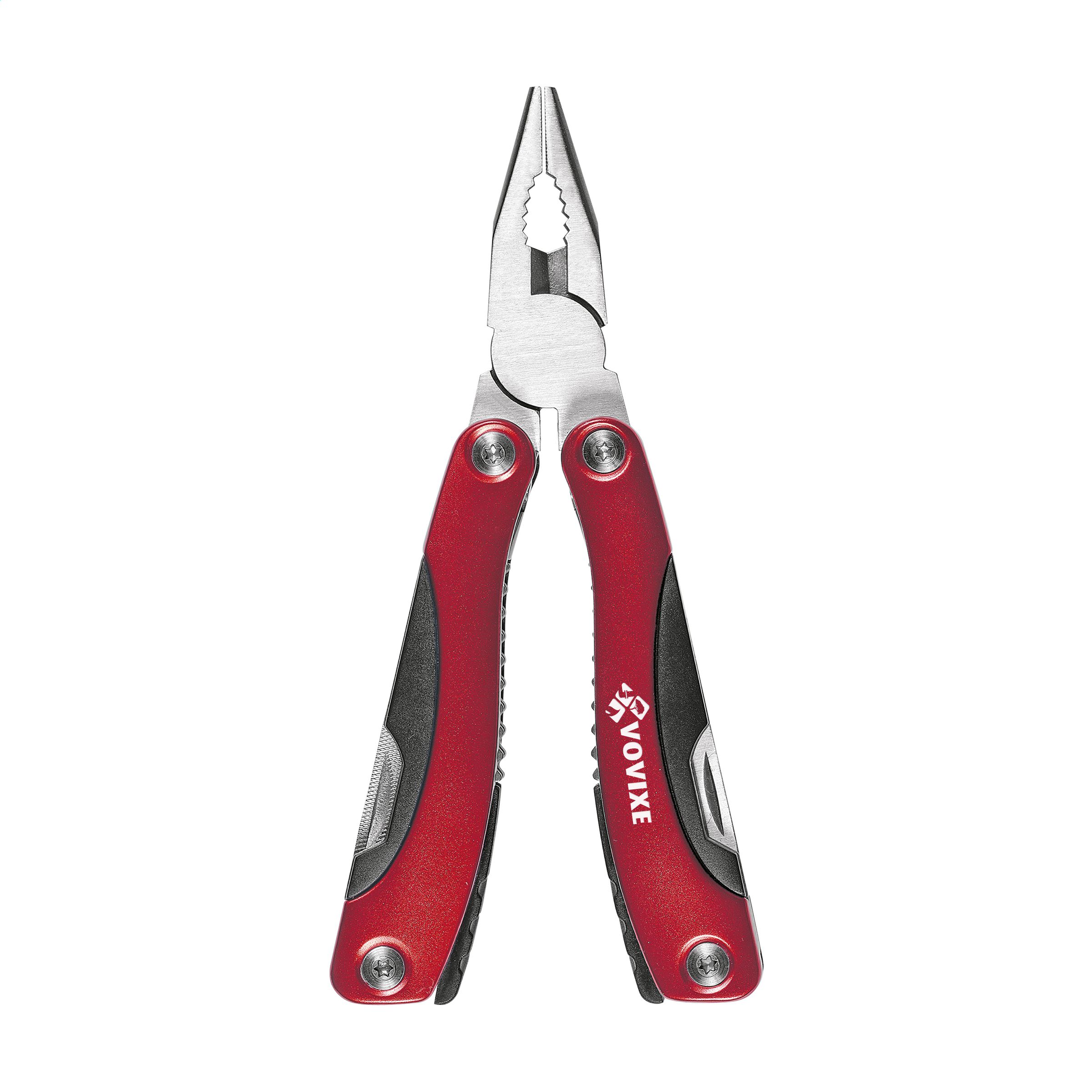 Kompakte Multizange aus Edelstahl mit Handgriff aus Aluminium im Metalliclook. 9-teilig mit 13 Funktionen: Zange, Isolierzange, 3 Schraubenzieher, Reibahle, Feile, Dosenöffner, Kapselheber, Fischentschupper, Haken-Entferner, Messer, Kreuzschraubenzieher. Mit Schloss. In einem Nylonetui. Beachten Sie, dass möglicherweise lokale Vorschriften für den Besitz und / oder das Tragen von Messern oder Multitools in der Öffentlichkeit gelten. Wird einzeln in einem Kraftkarton geliefert.