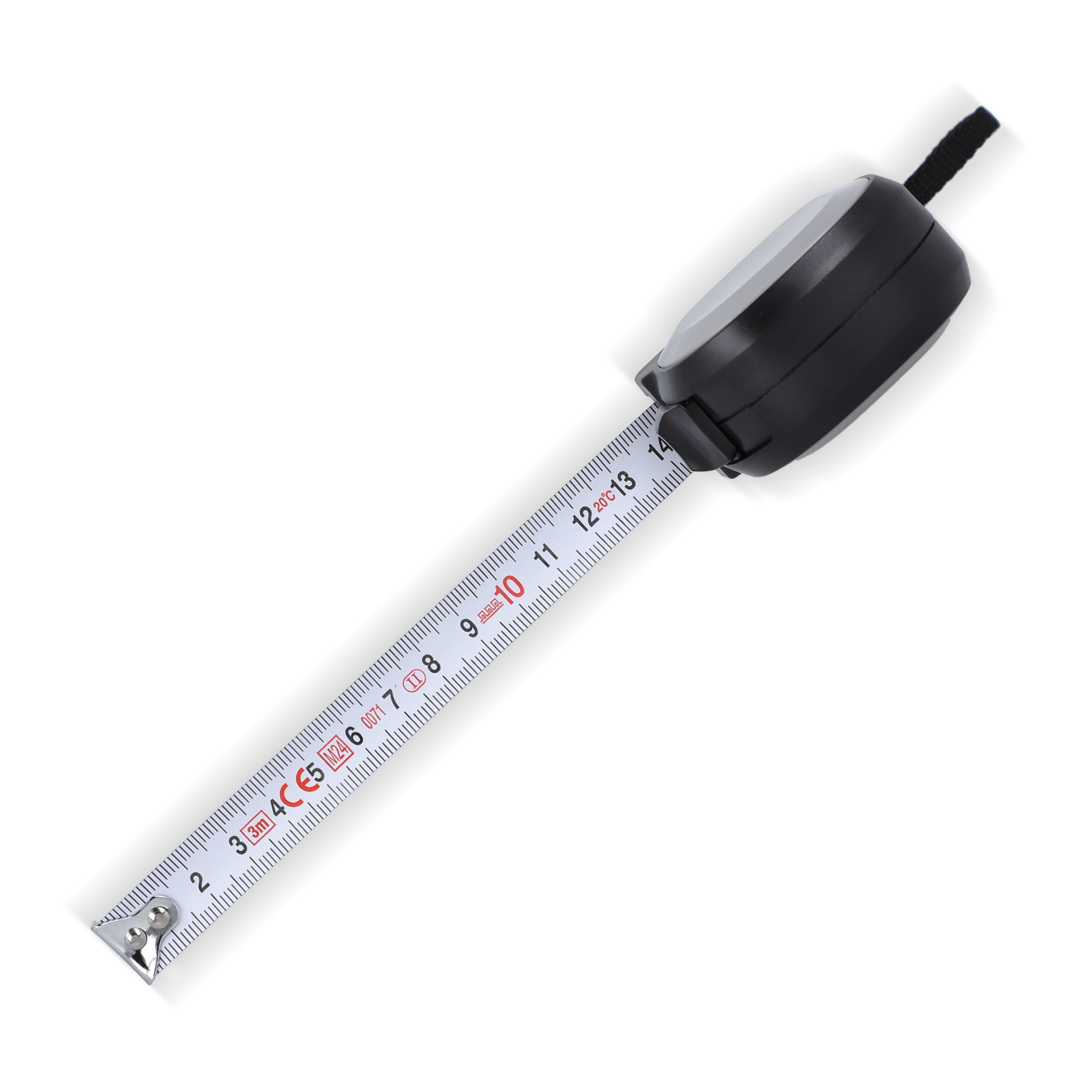 Strapazierfähiges 3 m langes Maßband aus recyceltem ABS, mit 16 mm breitem Band und einer Steifigkeit von bis zu 1,3 m. Mit einer flachen Oberfläche, ideal für die Werbeanbringung. Erfüllt die EWG-Normen der Klasse MID II für genaue Messungen.