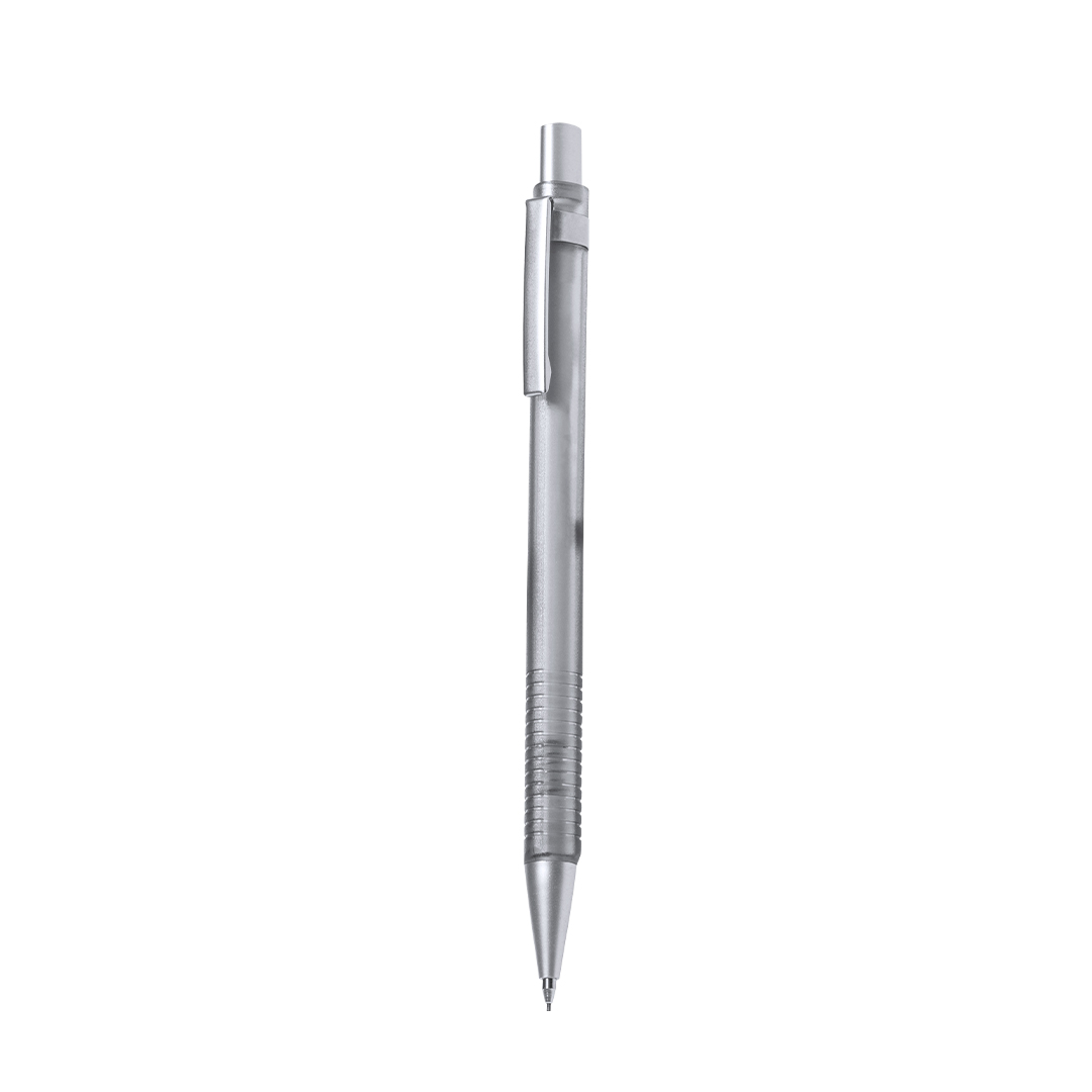 Stilvoller Druckbleistift aus robustem ABS. Durchscheinender grauer Schaft und passender strukturierter Griff, mit verchromtem Druckknopf, Clip und Spitze. Mit Radiergummi und 0,7-mm-Minen im Lieferumfang enthalten.