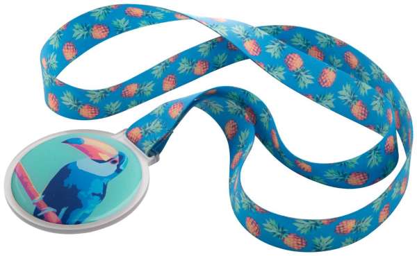 Acryl-Medallie mit Doming-Druck, Lanyard mit Sublimationsdruck. Preis inkl. Sublimaionsdruck und Doming. Mindestmenge: 100 Stk.