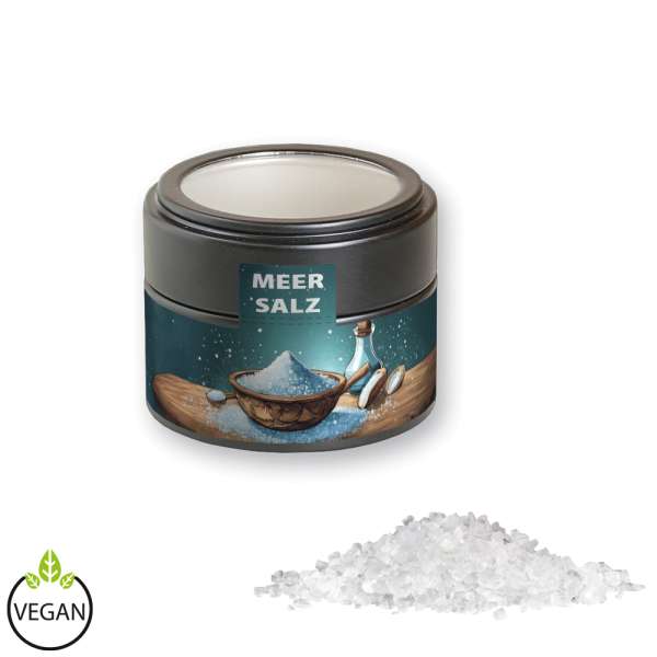 Informationen zu "Meersalz, ca. 110g, Metalldose Mini mit Sichtfenster schwarz"